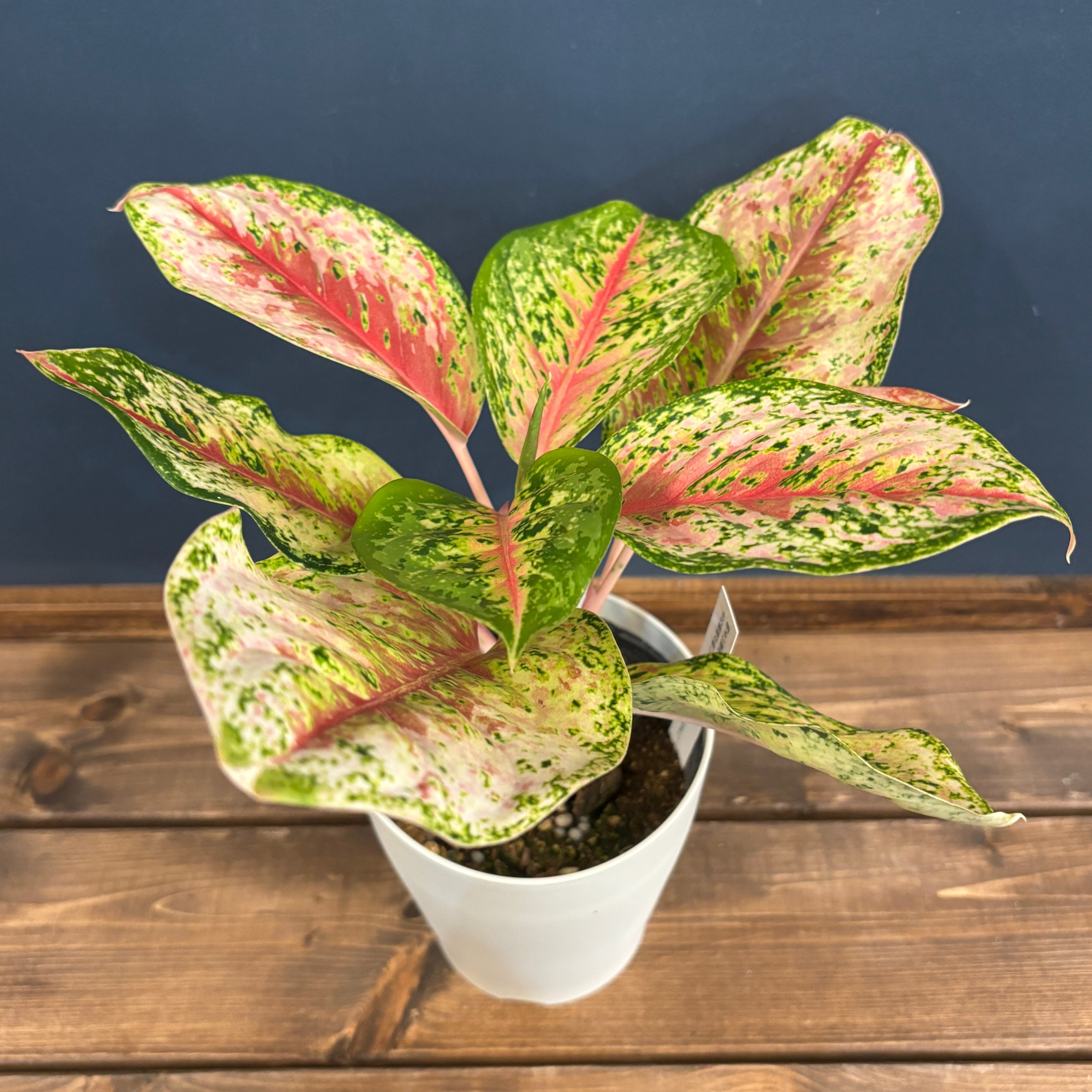葉に白く細かい斑が入り、葉脈を中心に赤い模様が入るとても美しい品種になります。