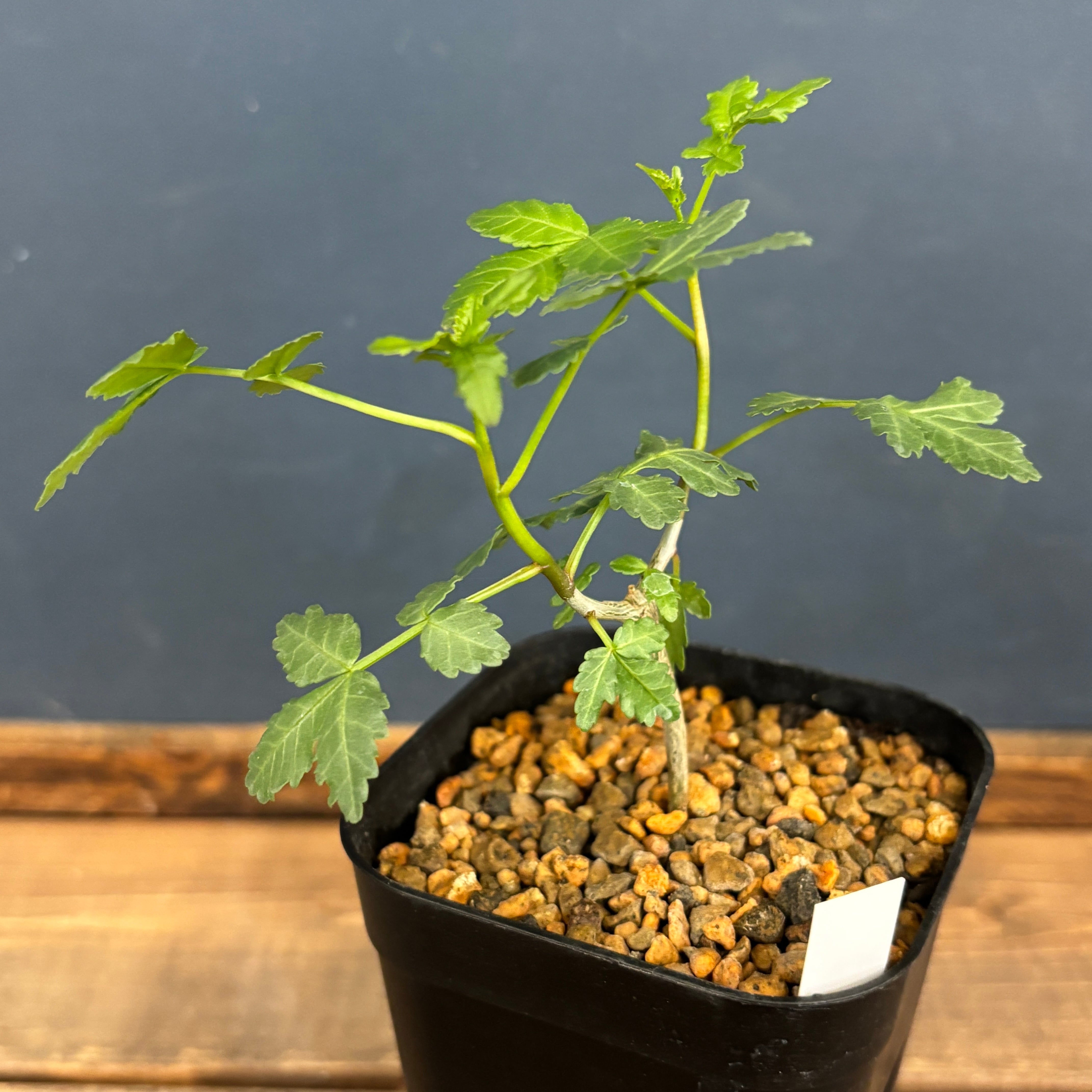 灌木に近い塊根植物で、細かい葉がかわいらしい印象を受けます。