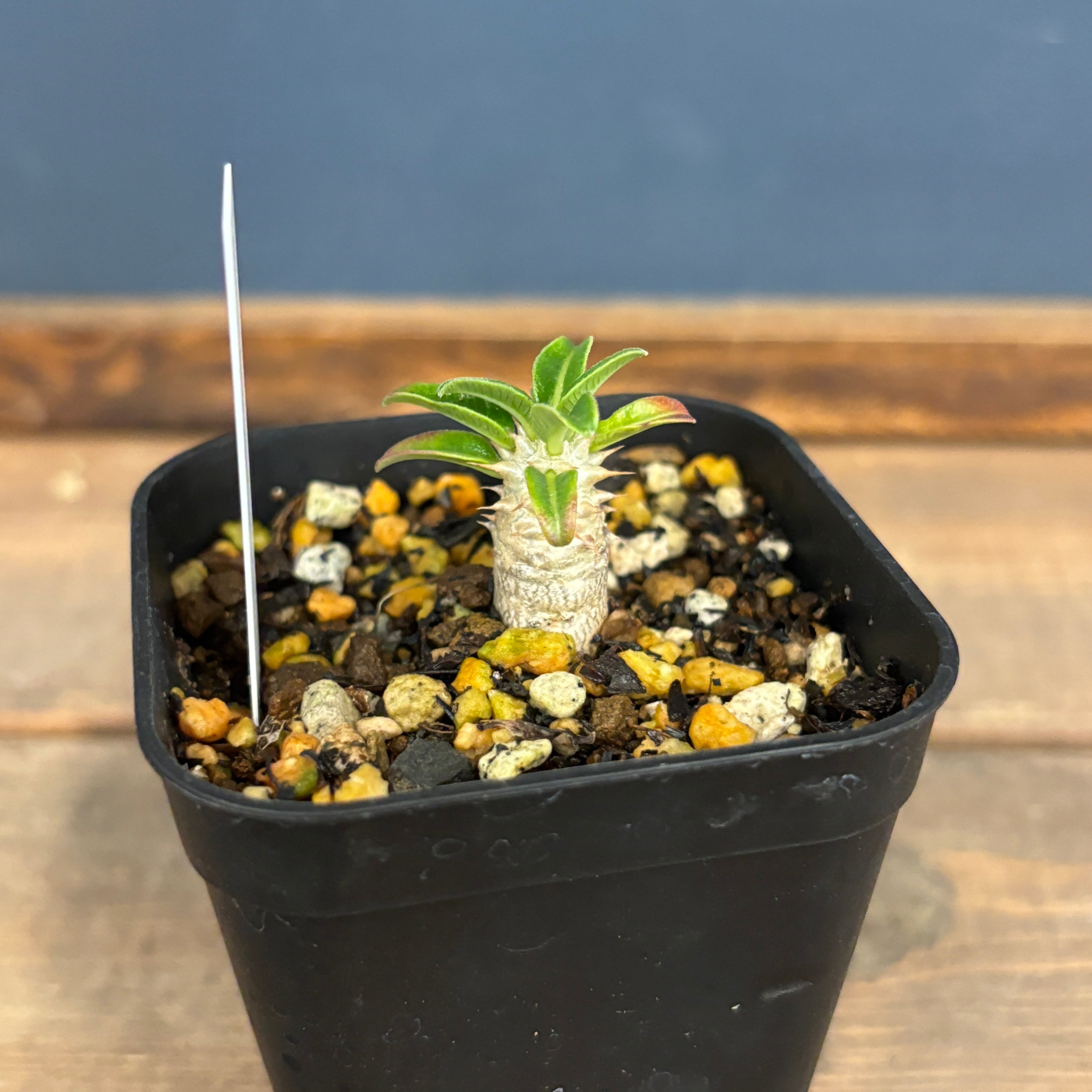 非常に人気のあるパキポディウムの1種で、デンシフローラムの葉が縮れるような品種です。デンシフローラム自体比較的成長が早く育てやすい品種となるので初心者の方にもおすすめです。