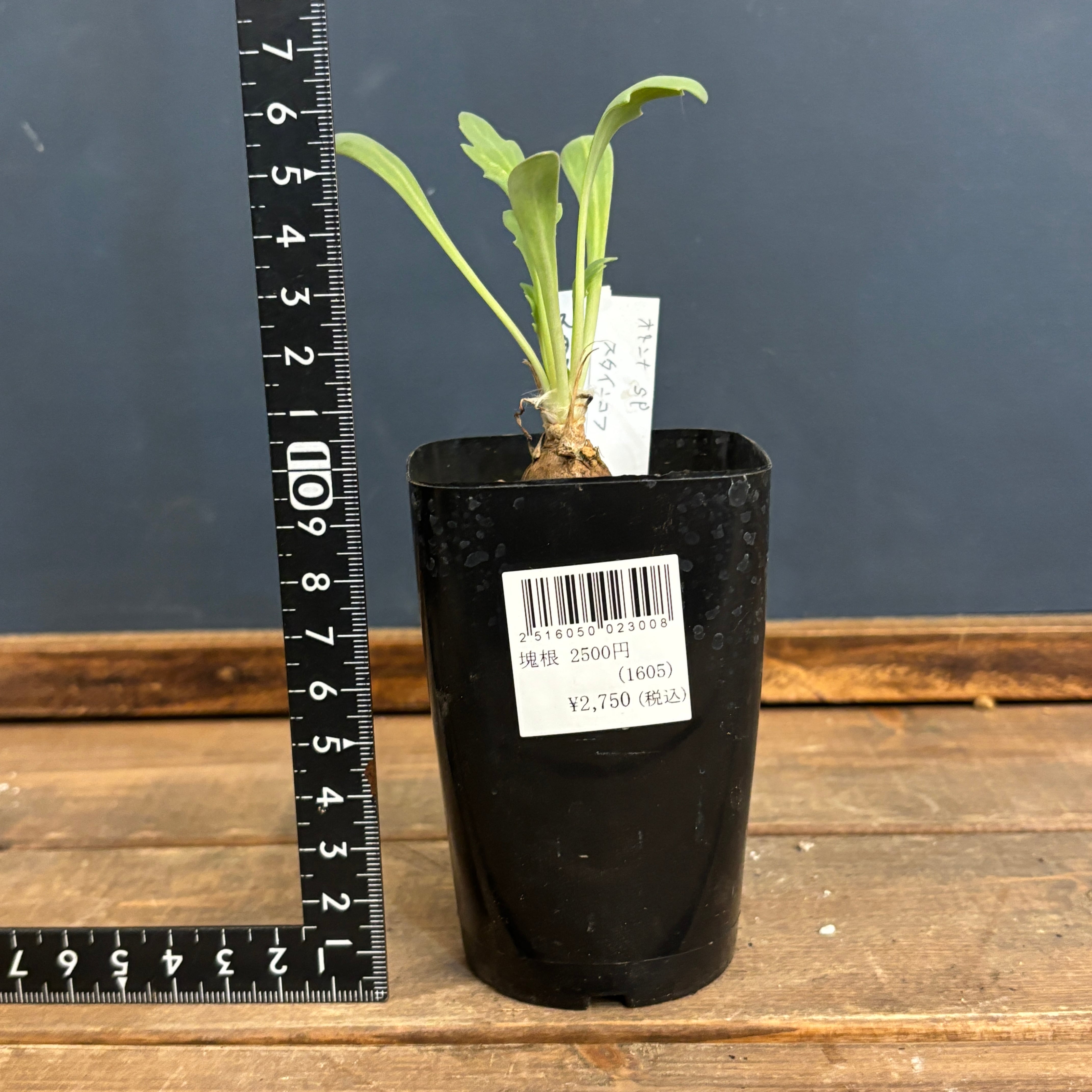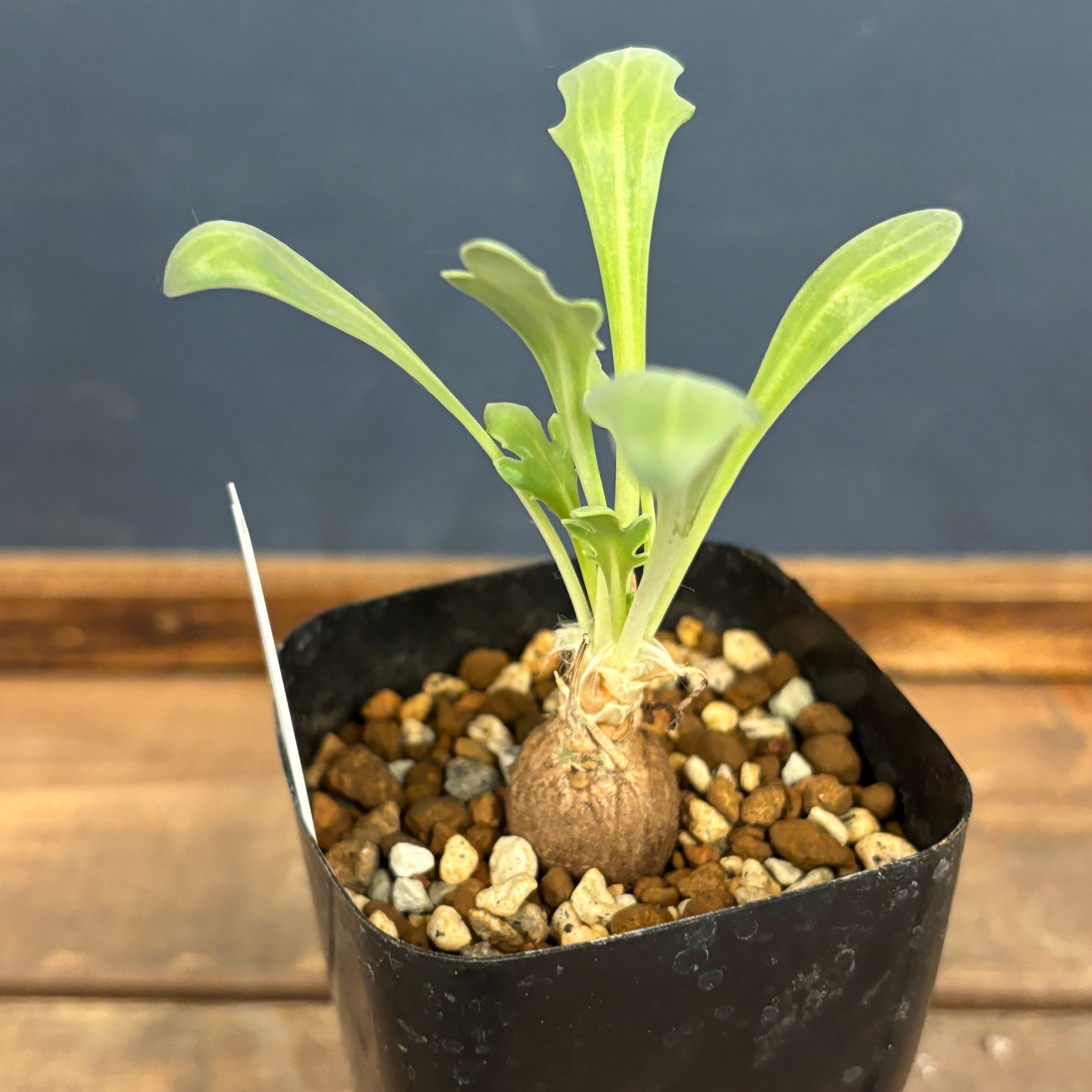 白みがかった葉が丸い塊根から展開されるとてもかわいらしい品種です。