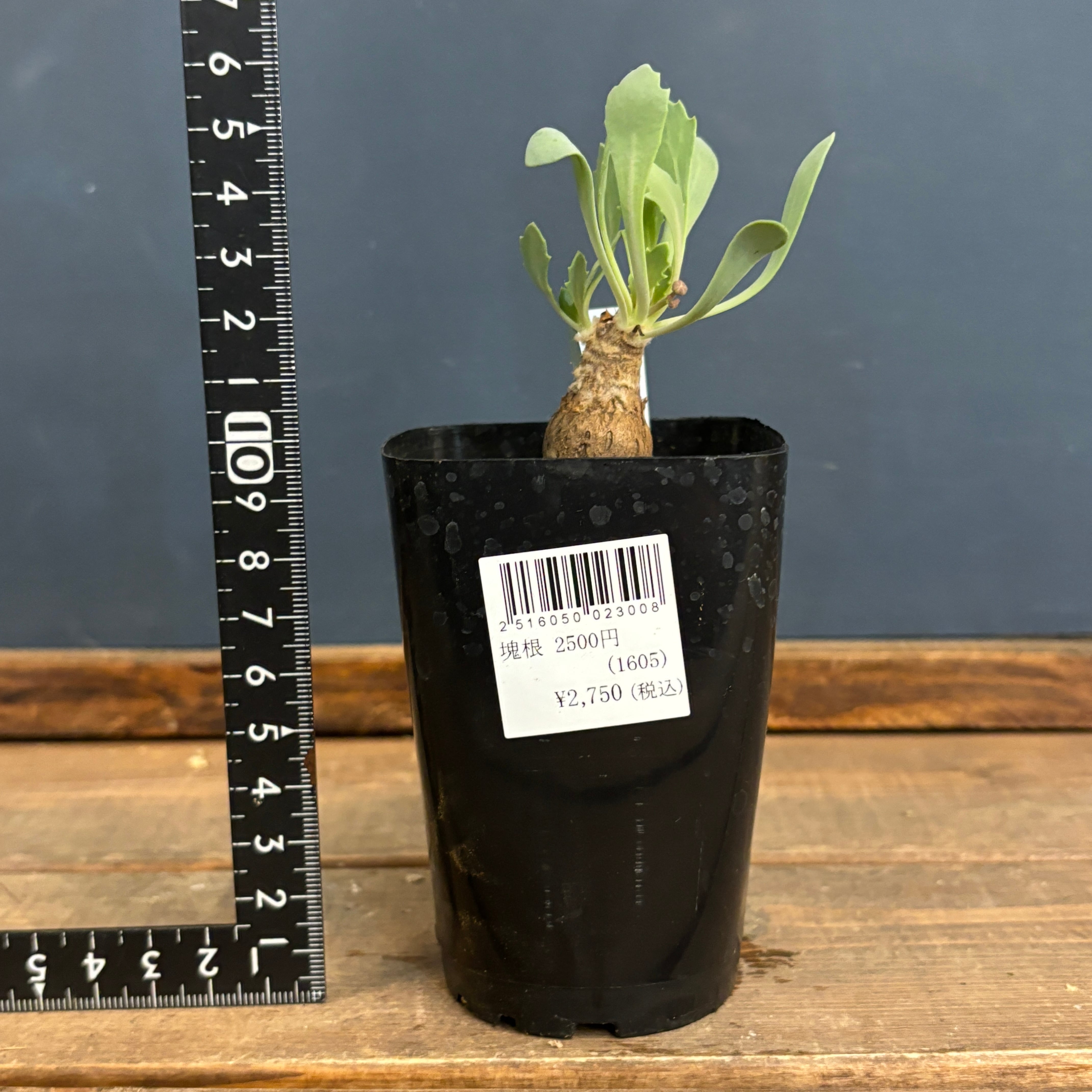 白みがかった葉が丸い塊根から展開されるとてもかわいらしい品種です。