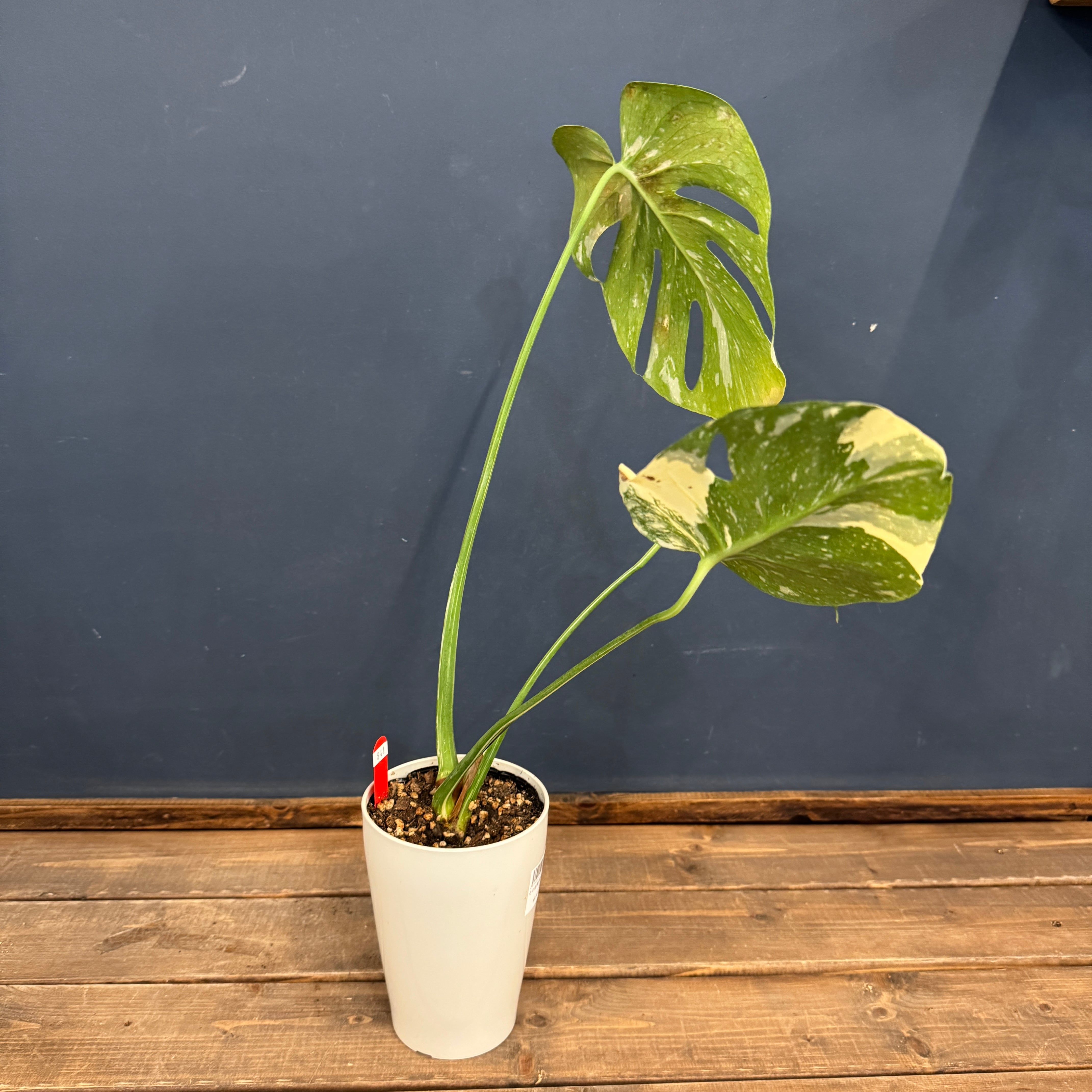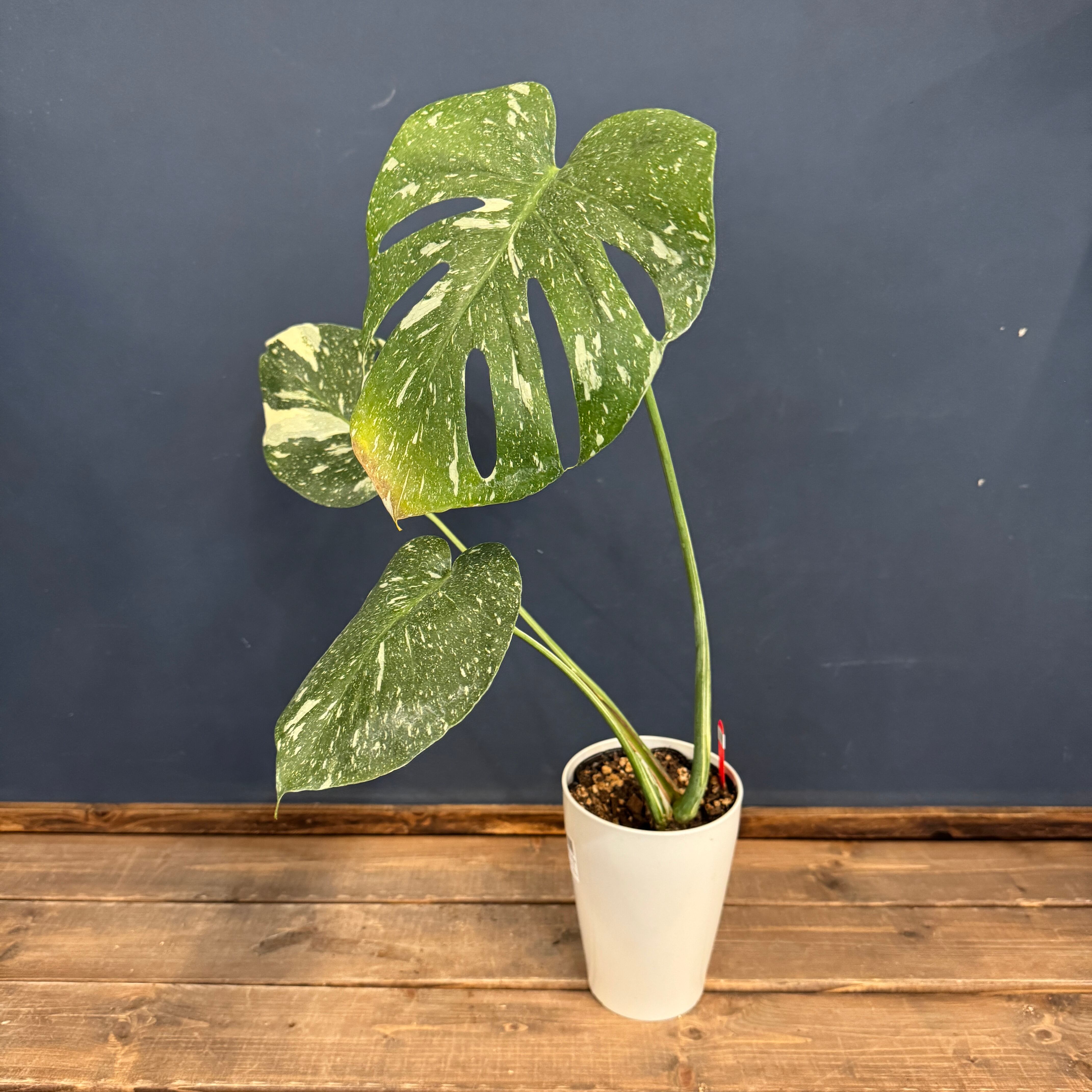モンステラ・デリシオーサに散り斑が入るのがハッキリと入る個体になります。