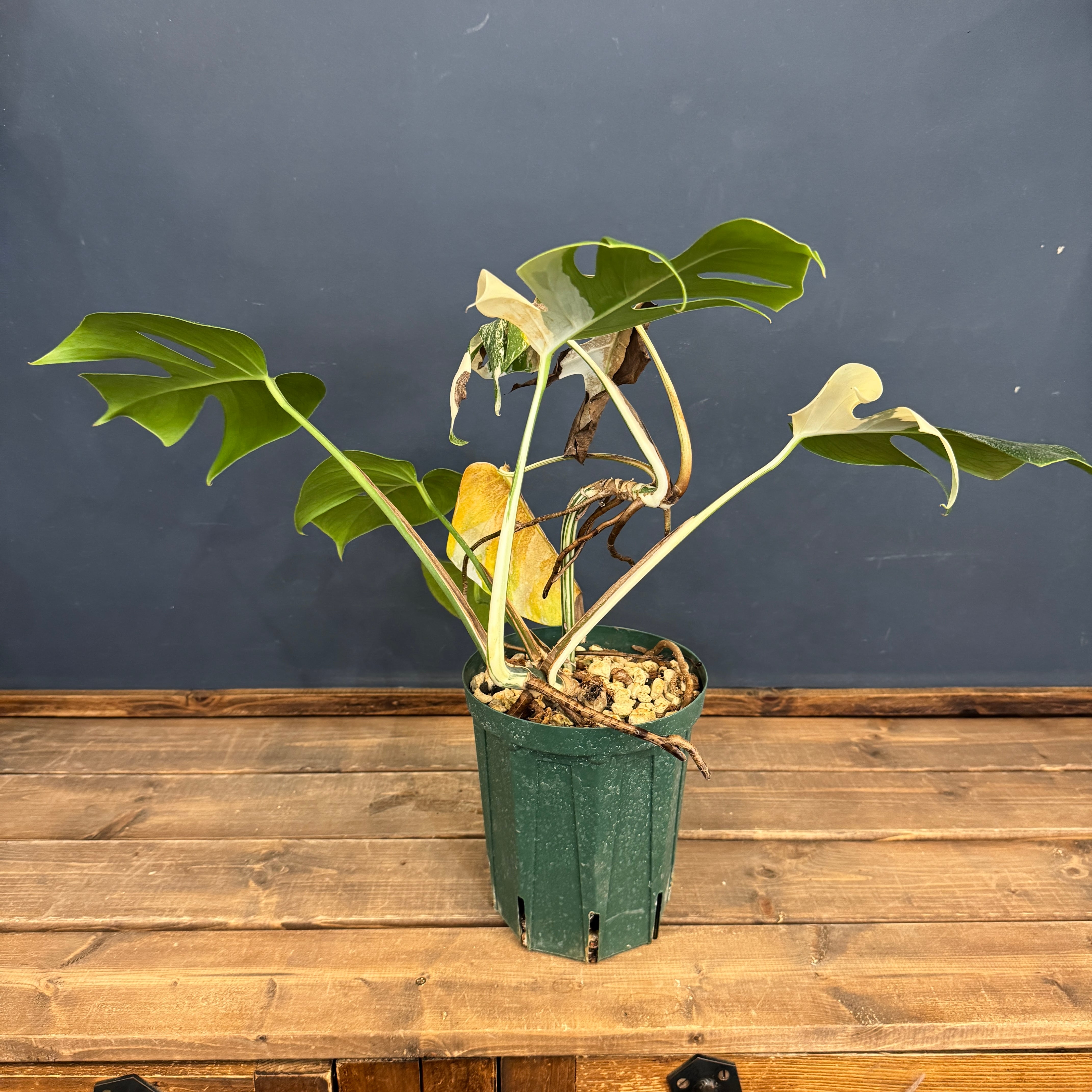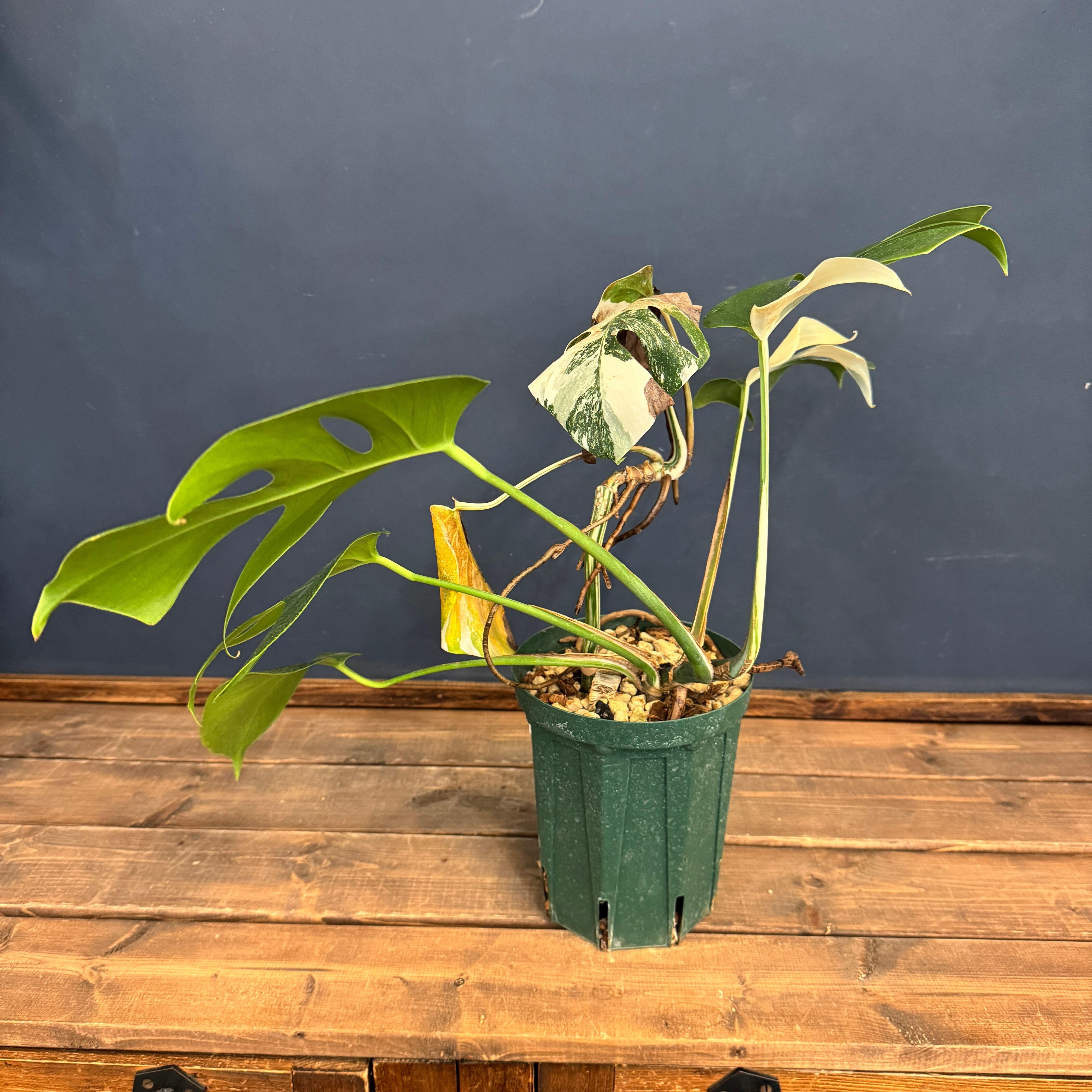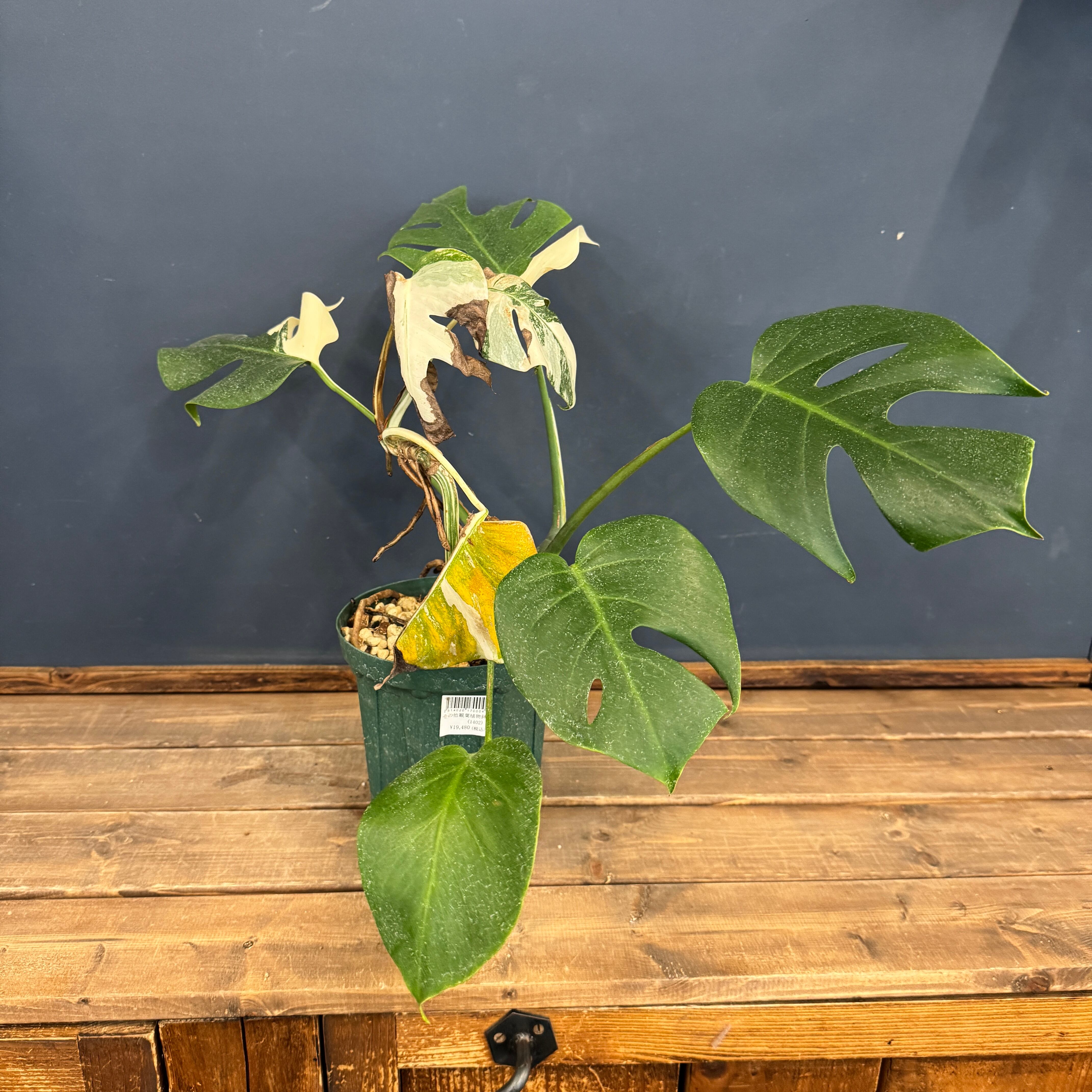 育てやすく丈夫でとても人気のあるモンステラの美しい白斑が入るタイプになります。