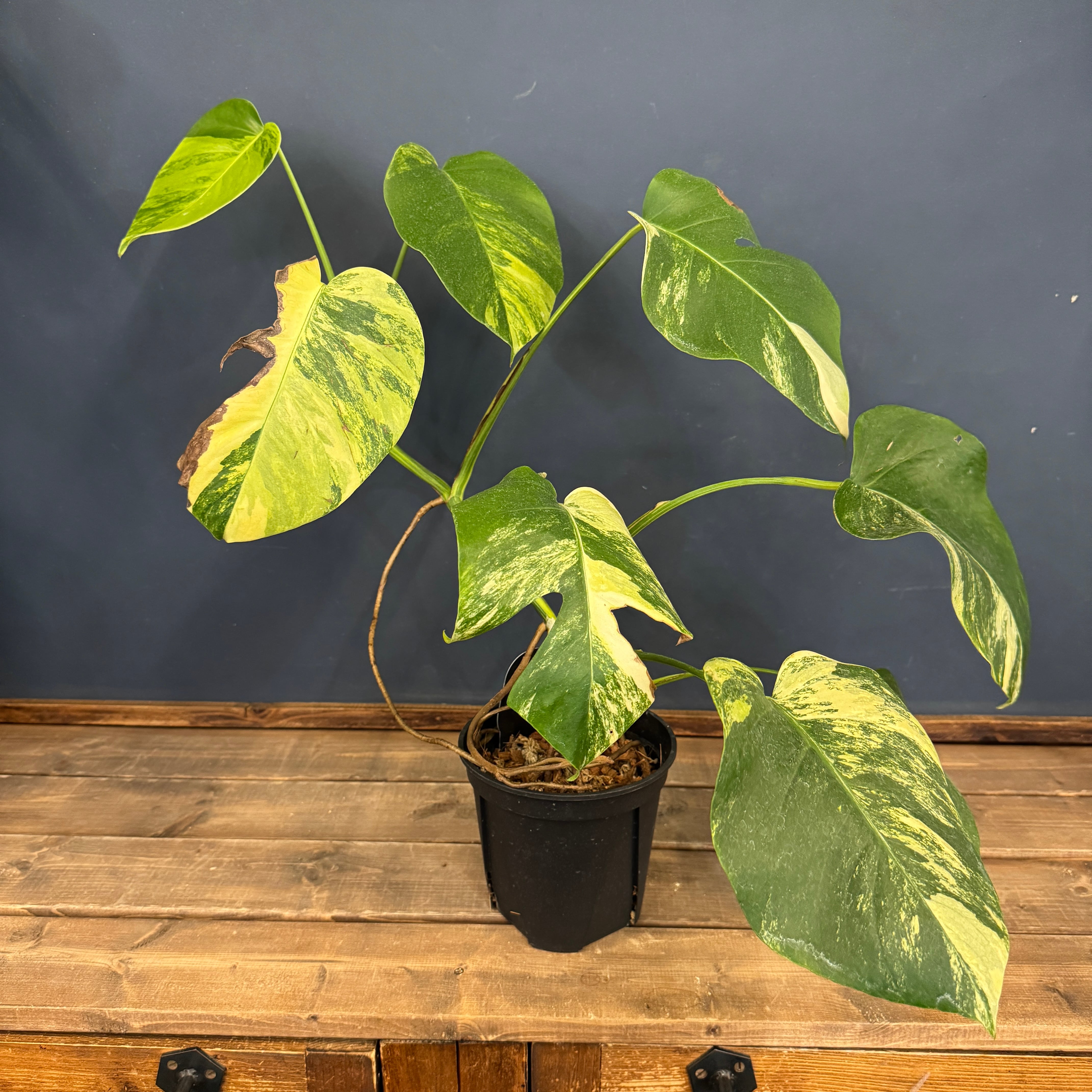 育てやすく丈夫でとても人気のあるモンステラの美しくとても珍しい黄斑が入るタイプになります。