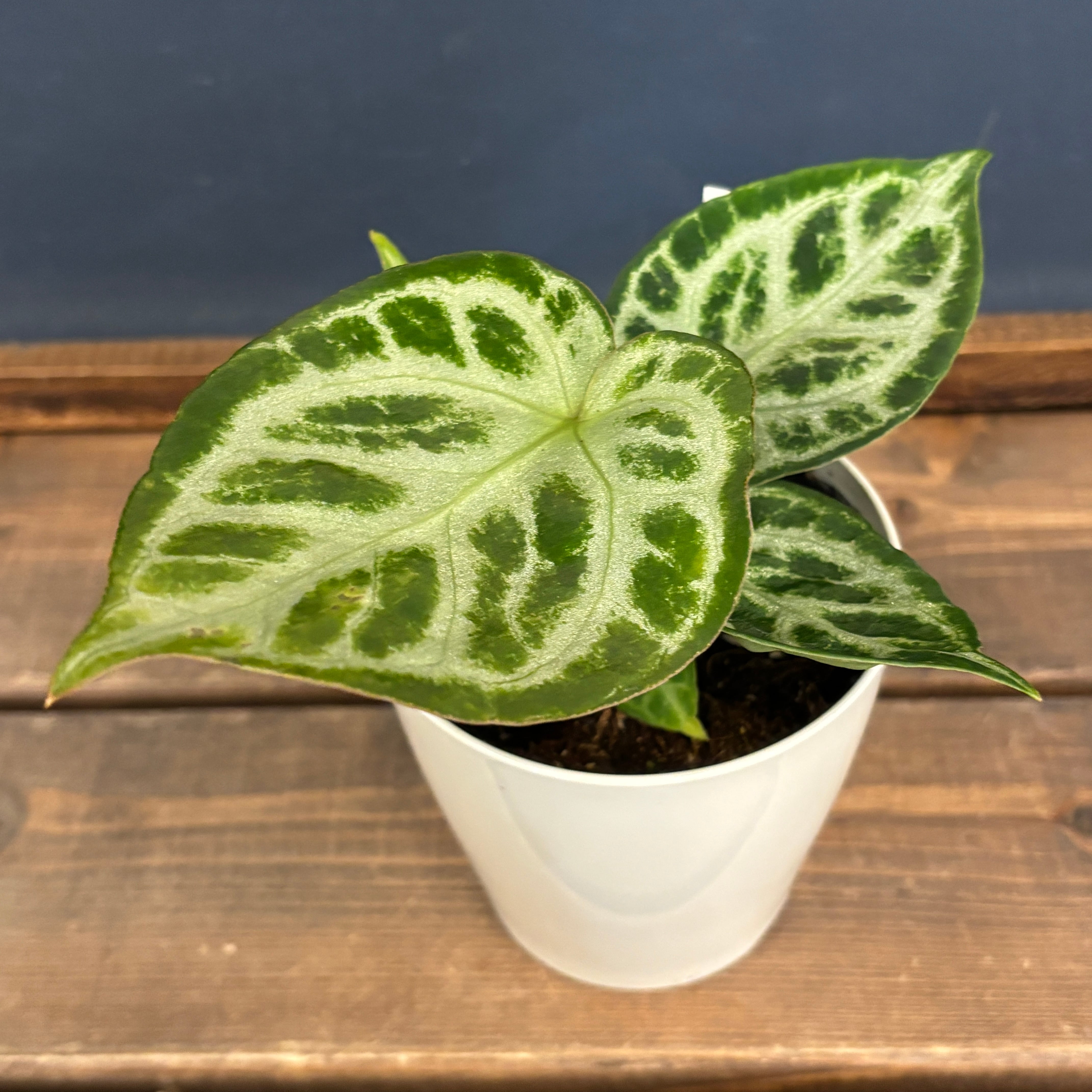 丸みを帯びた葉に、銀色の美しい葉脈が入るとても人気の品種になります。