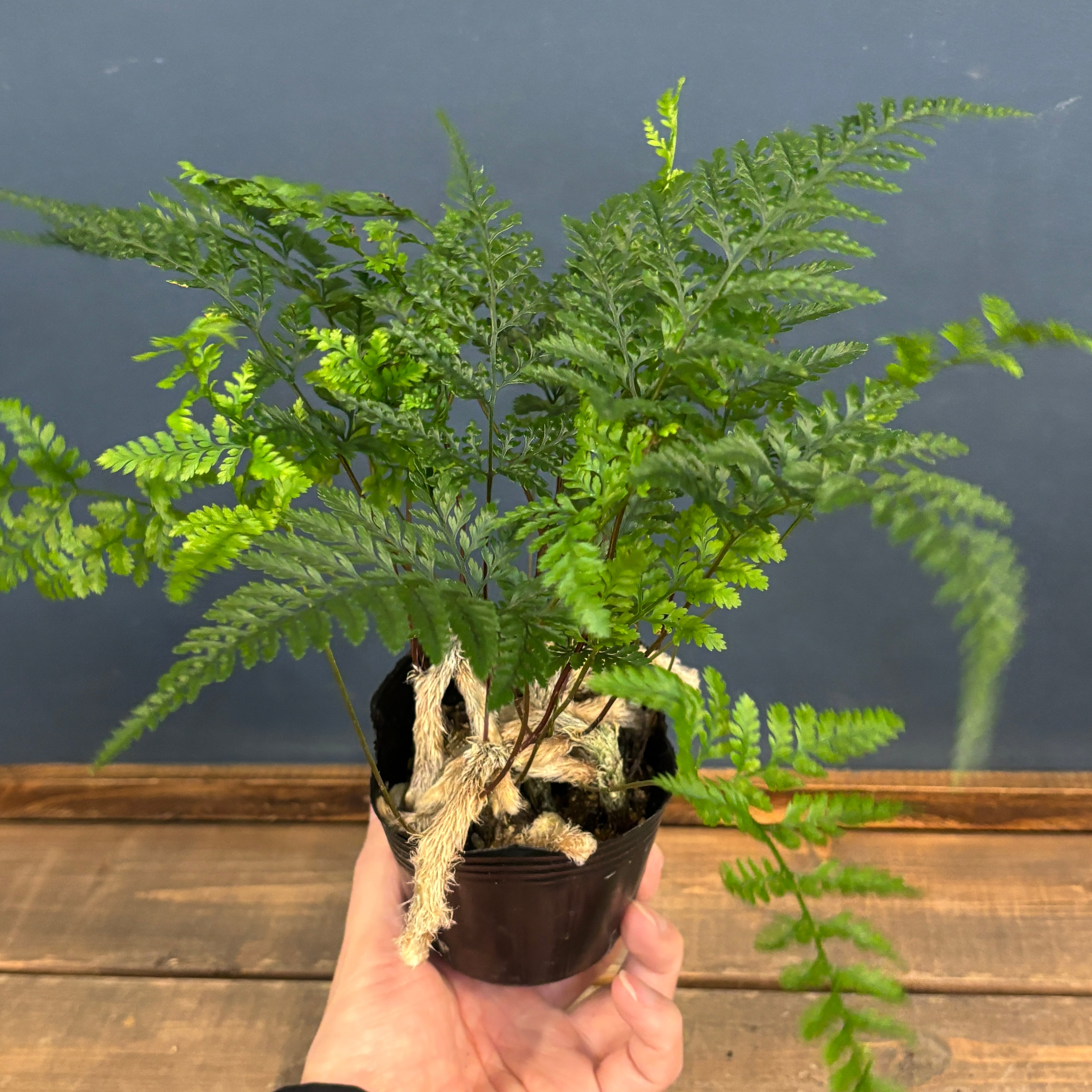 台湾原産の着生植物で、ふわふわとした根茎から葉を展開していくおもしろく人気の植物です。