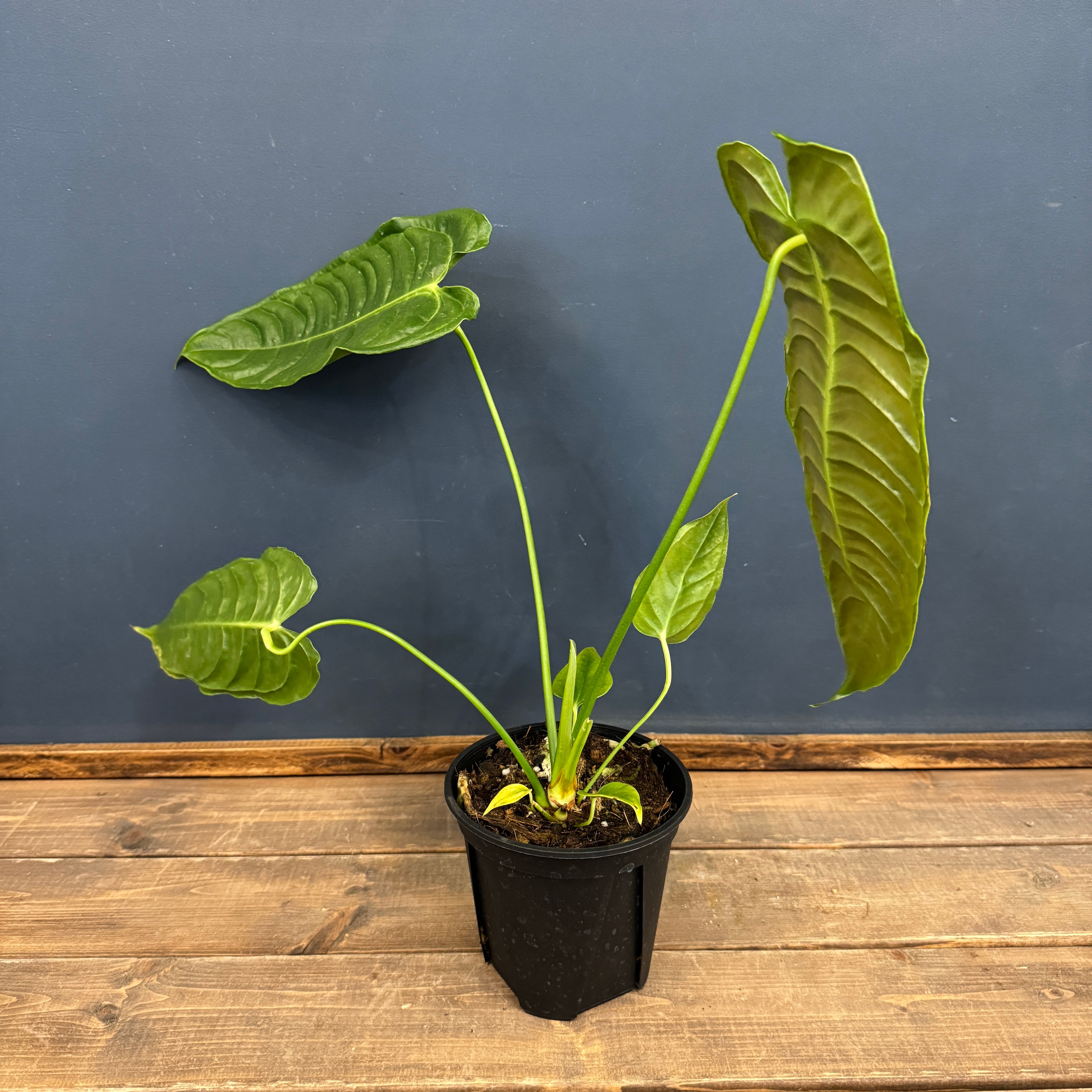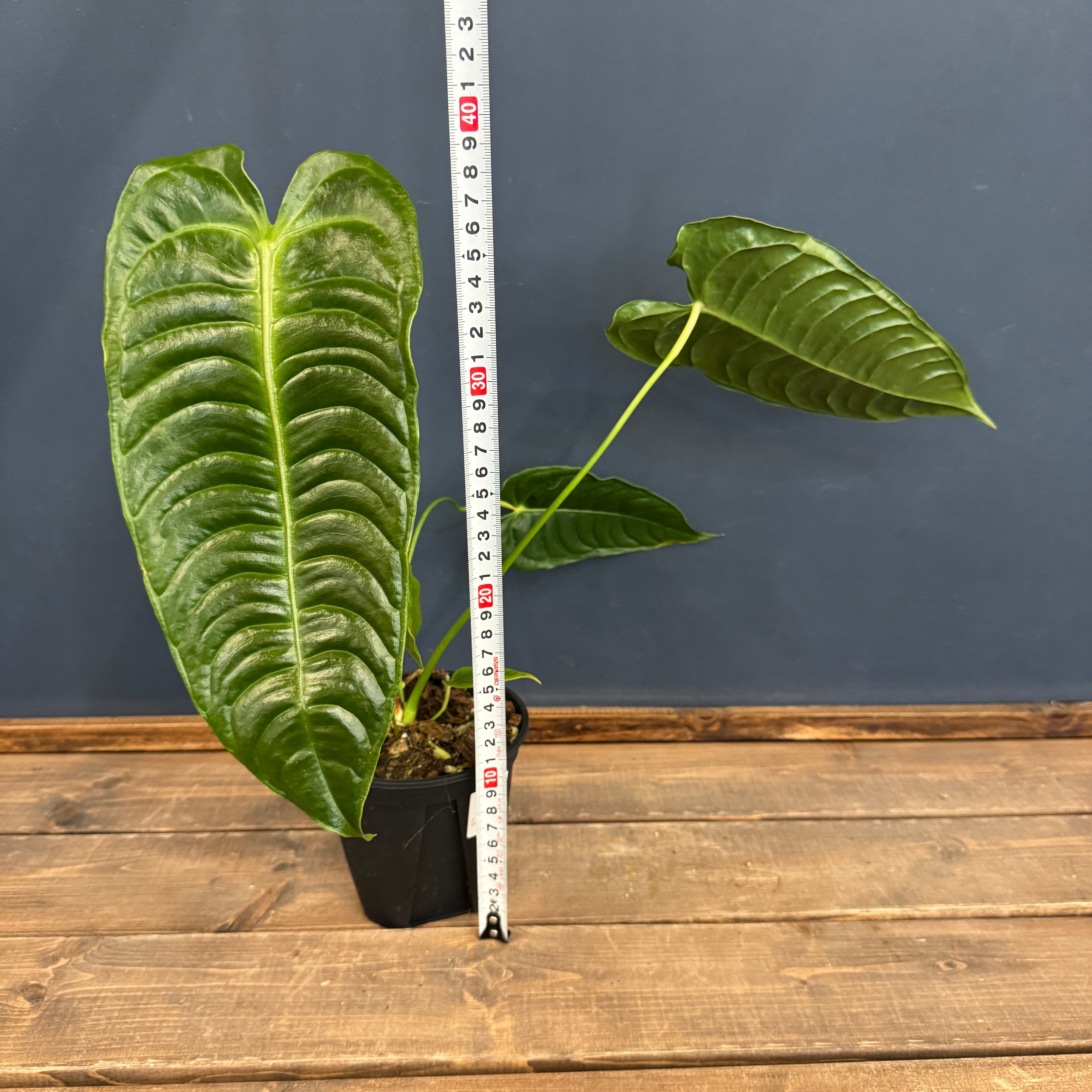 葉の表面に現れる葉脈が特徴的で、波状の模様が連なっているような美しい姿が魅力的です。このベイチーは「キングオブアンスリウム」と呼ばれており、