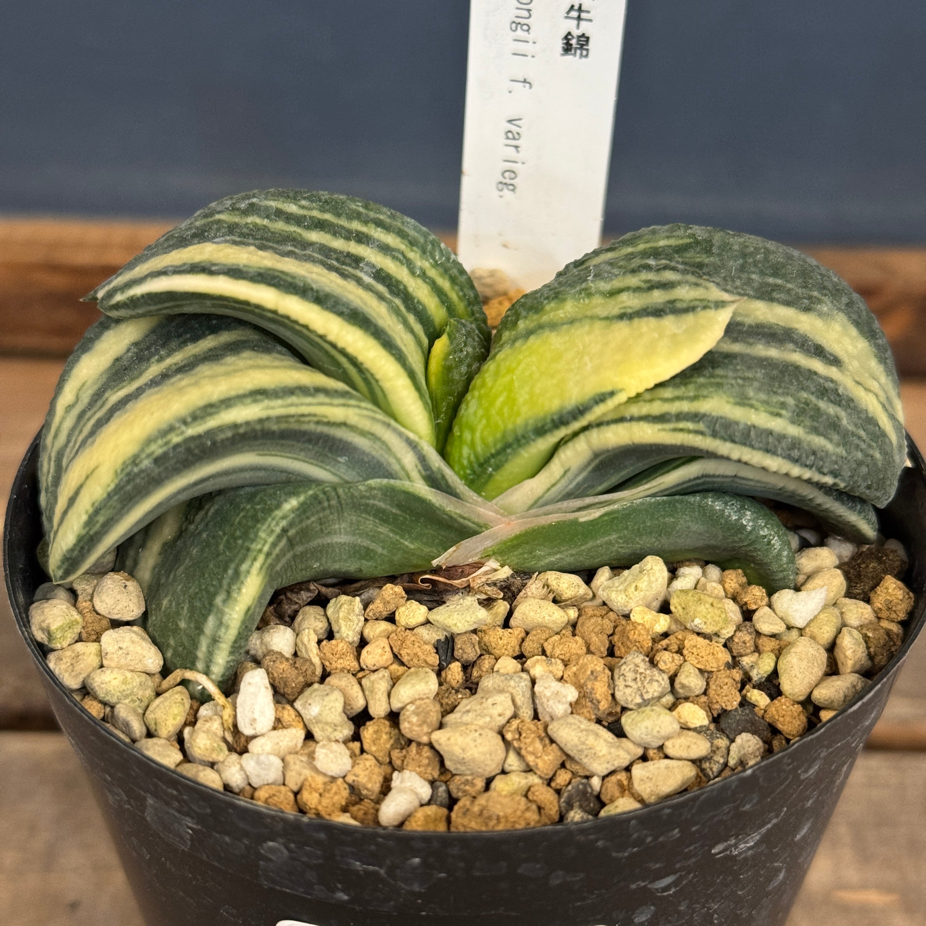肉厚で詰まった葉姿が魅力の臥牛の斑入り個体