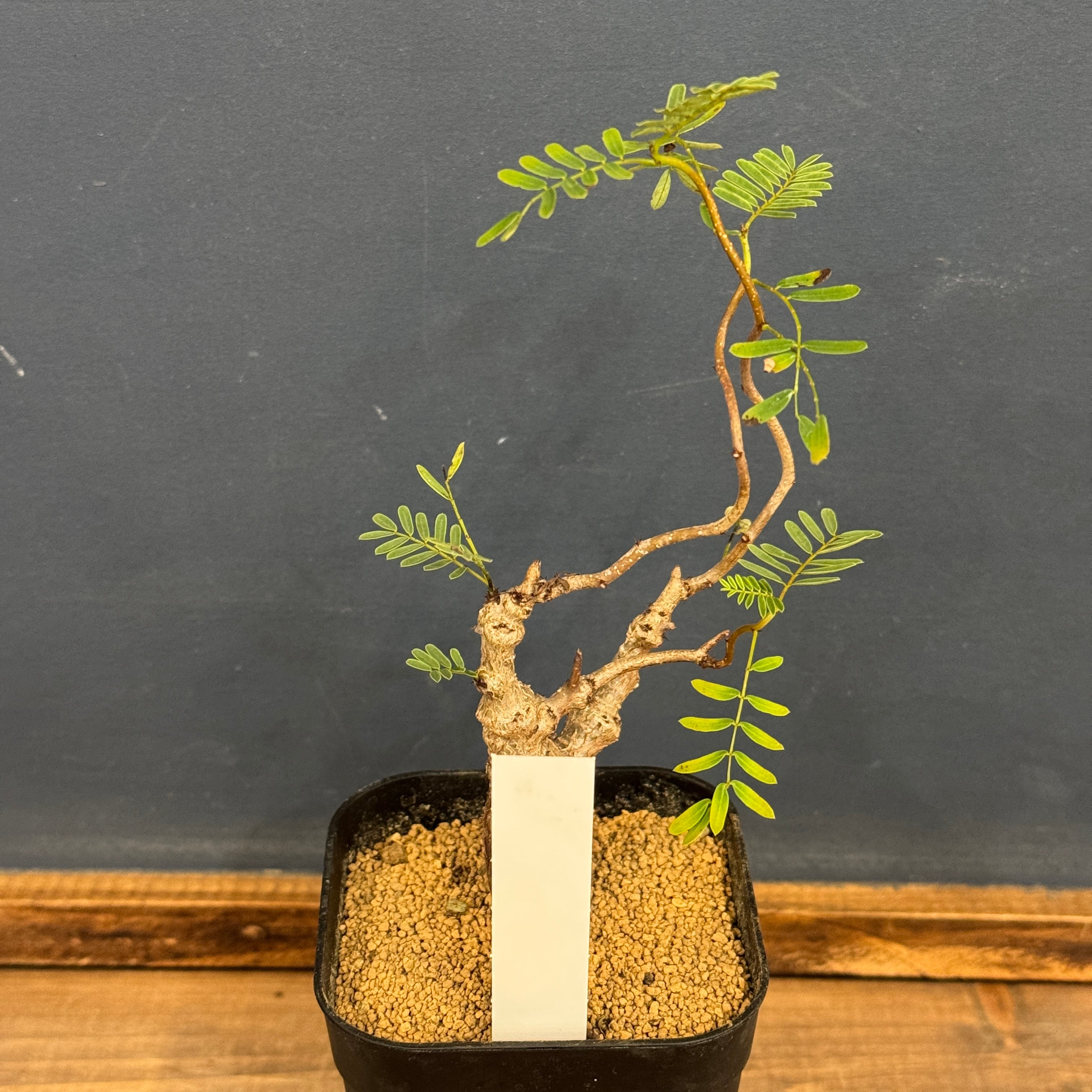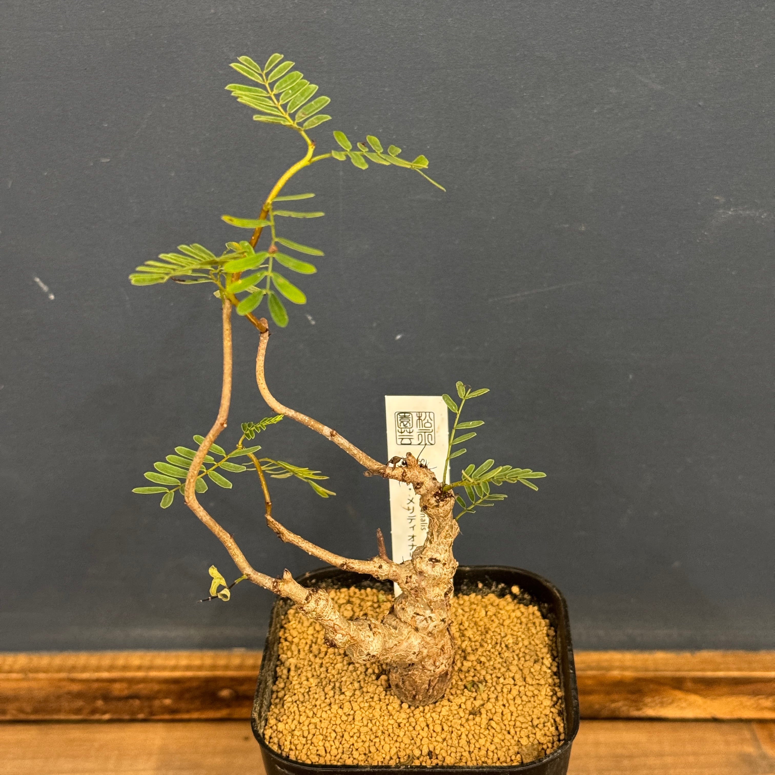 マメ科の灌木でゴツゴツした幹から、マメ科特有の小さい葉を展開させる。