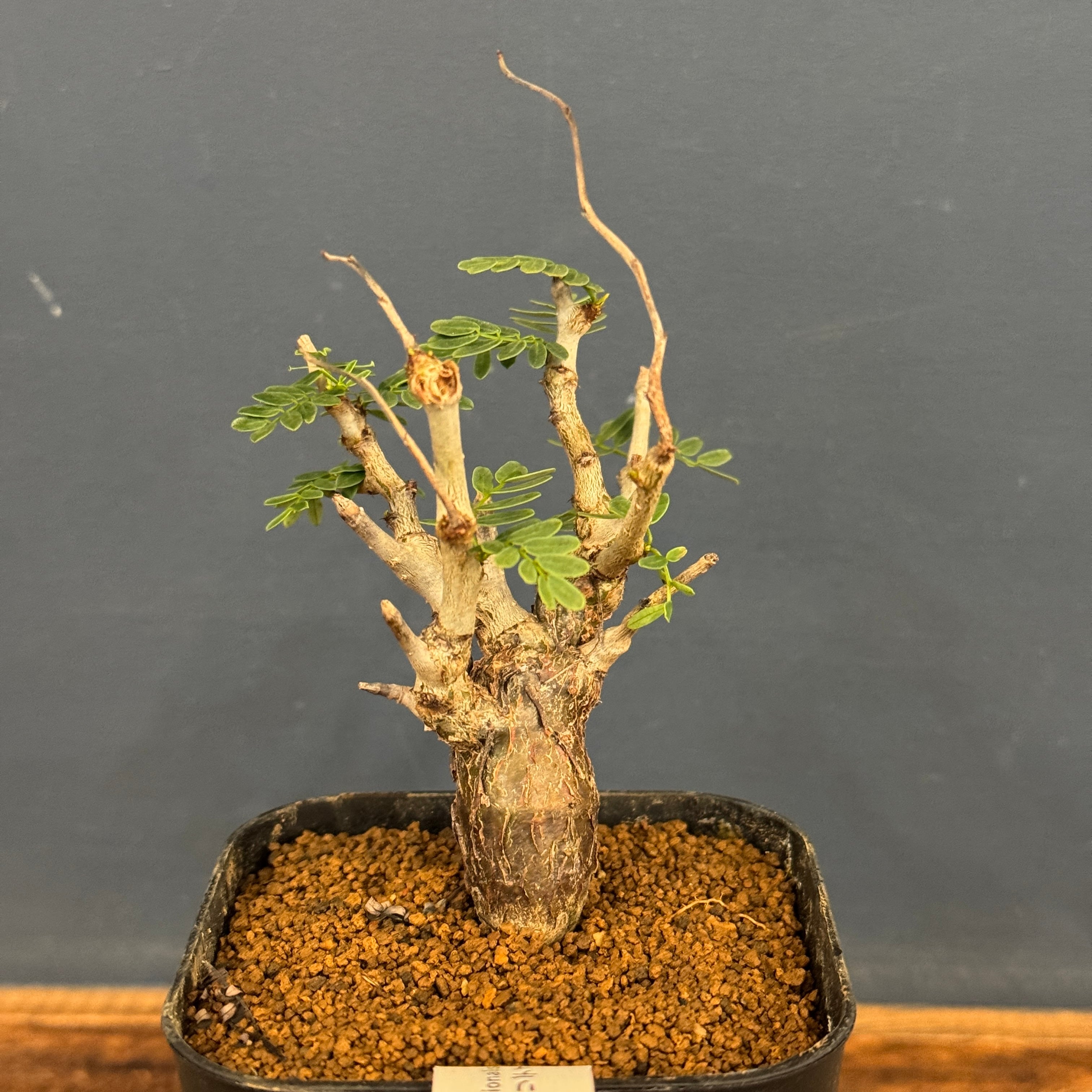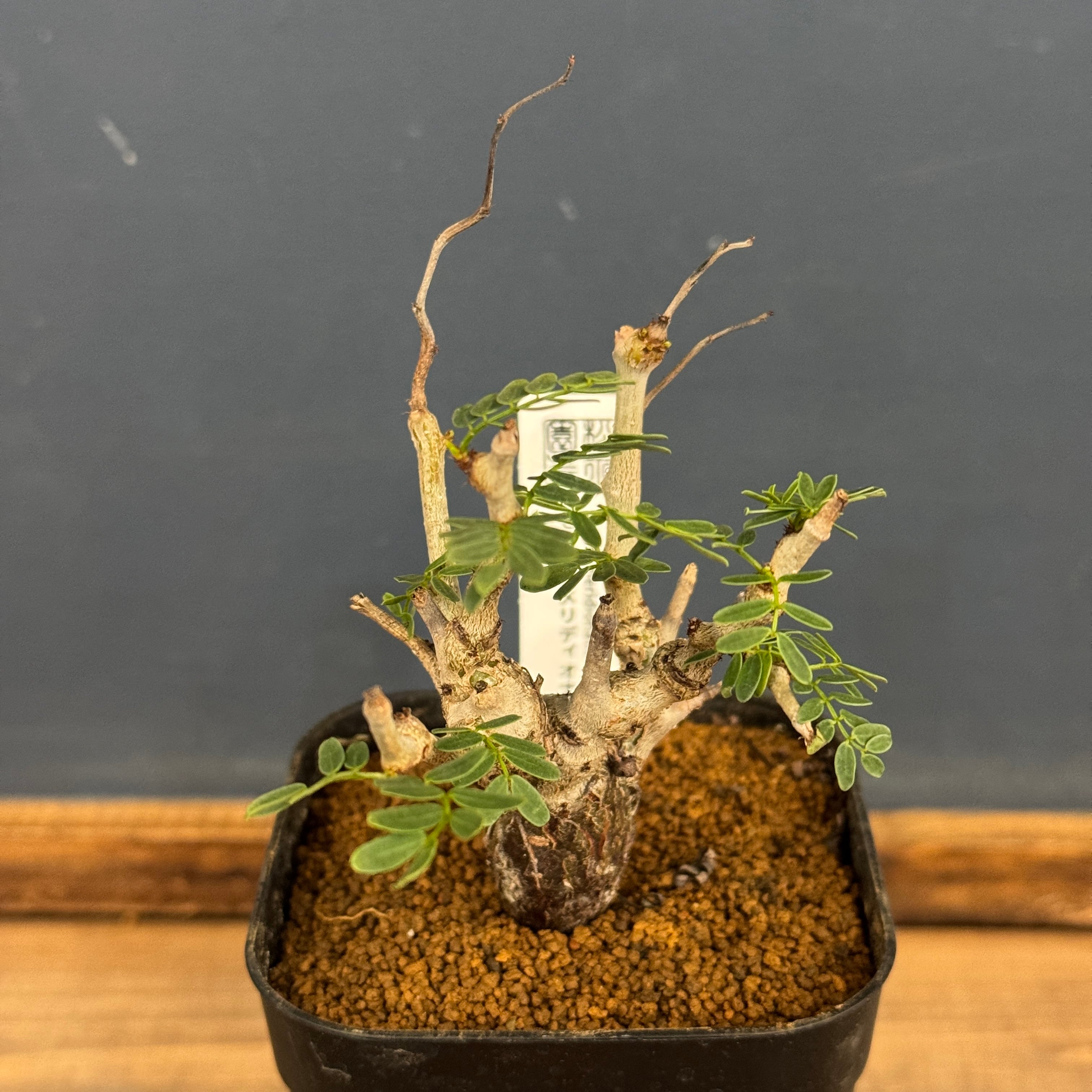 マメ科の灌木でゴツゴツした幹から、マメ科特有の小さい葉を展開させる。