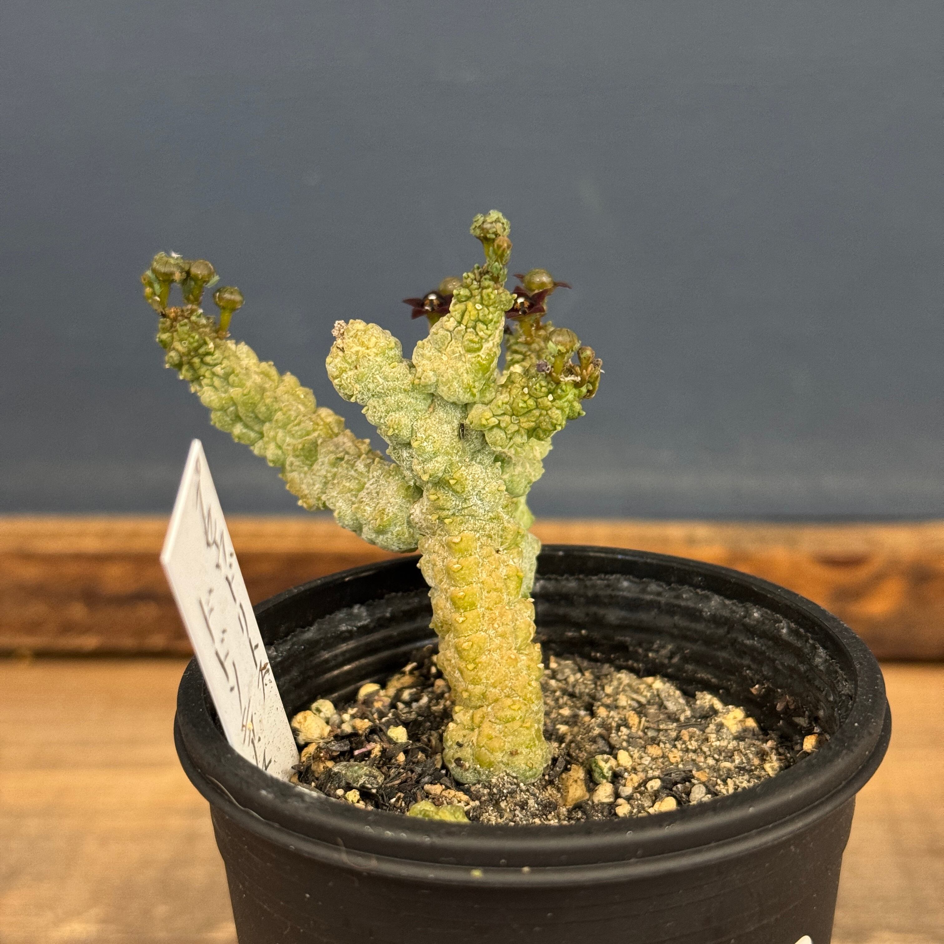 角張った塊状の株とゴツゴツとした表面の凹凸が特徴で、岩のような独特の姿をしています