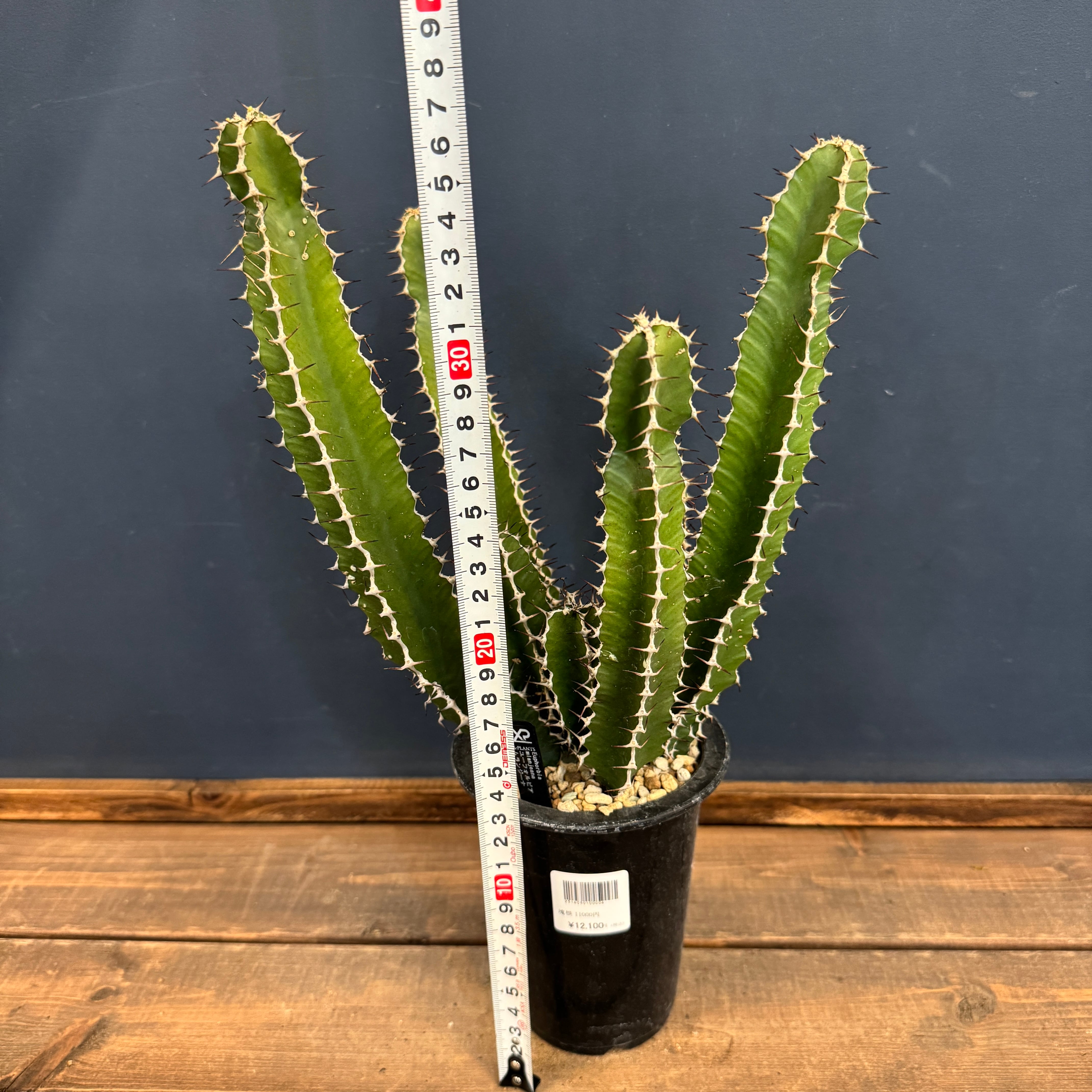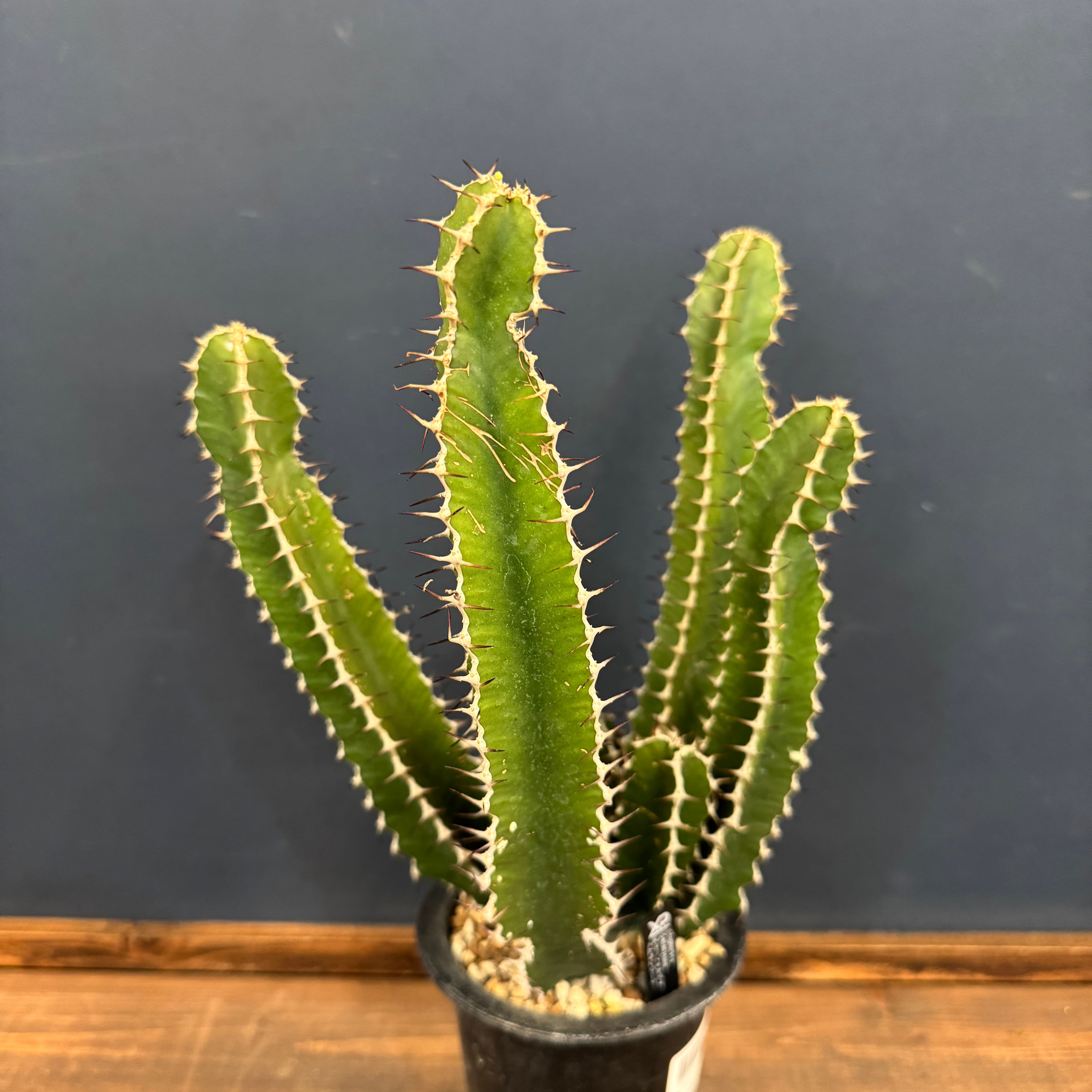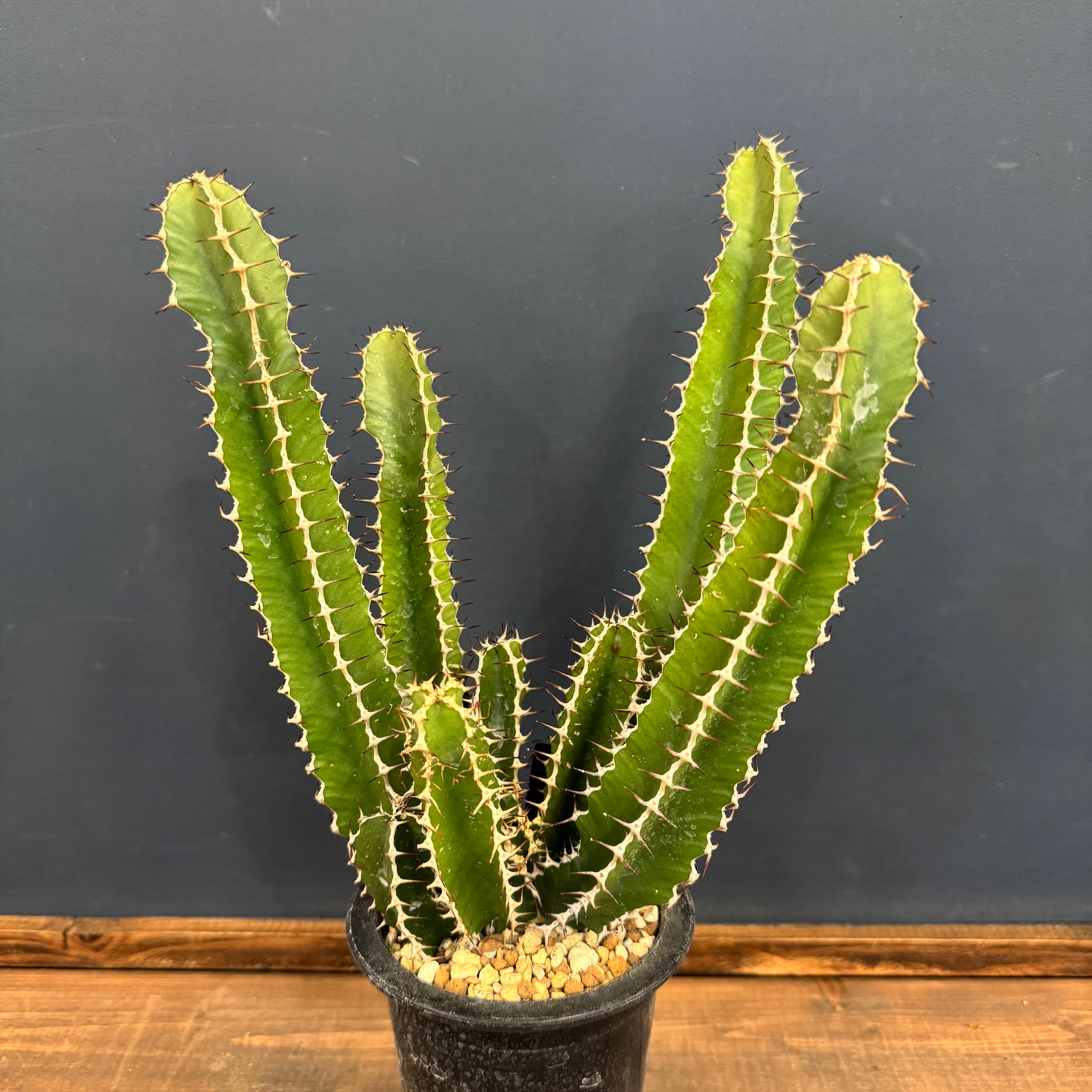 とても珍しい品種で、大株になると太く木質化した幹から、柱サボテンのような多肉質でトゲのある葉を変改していきます。