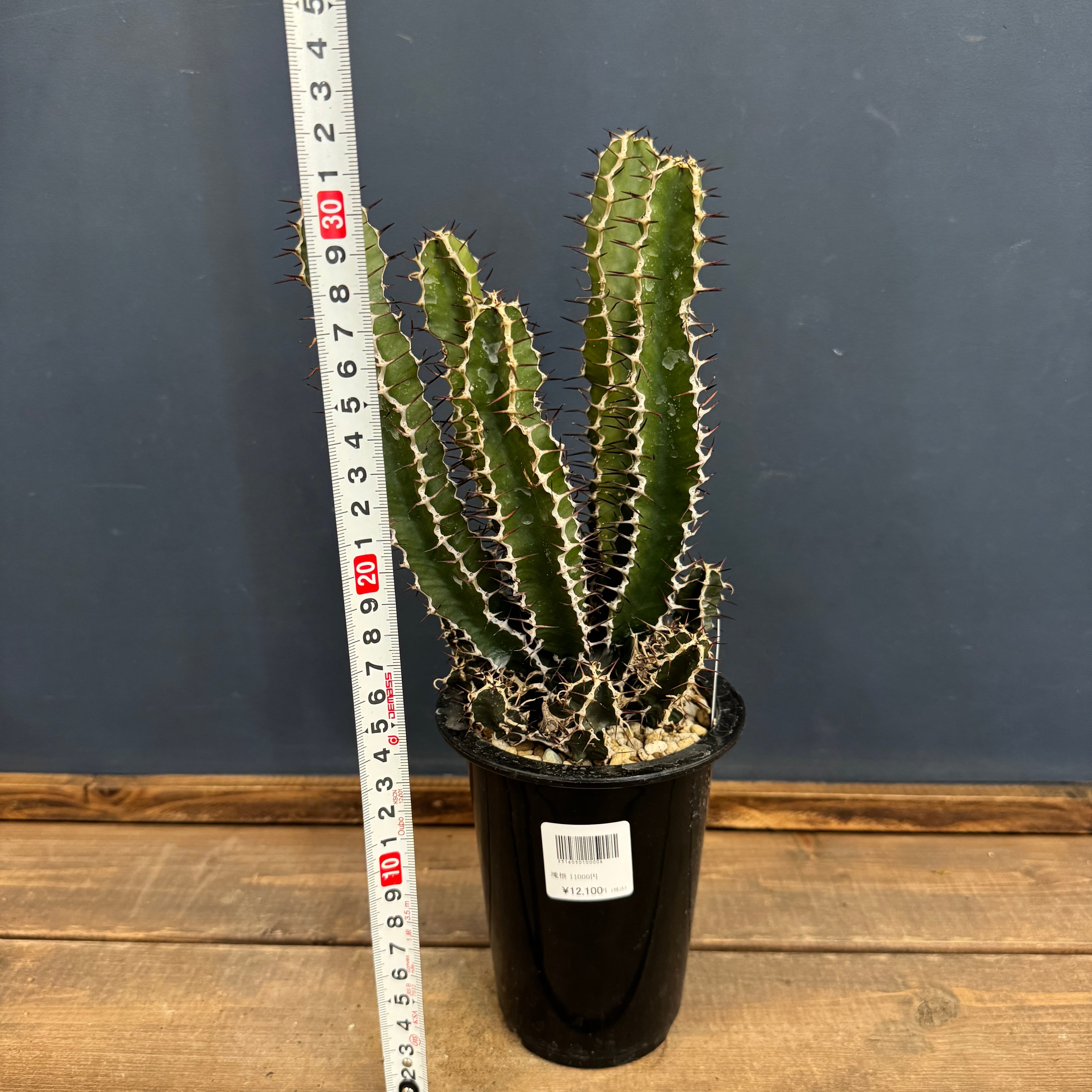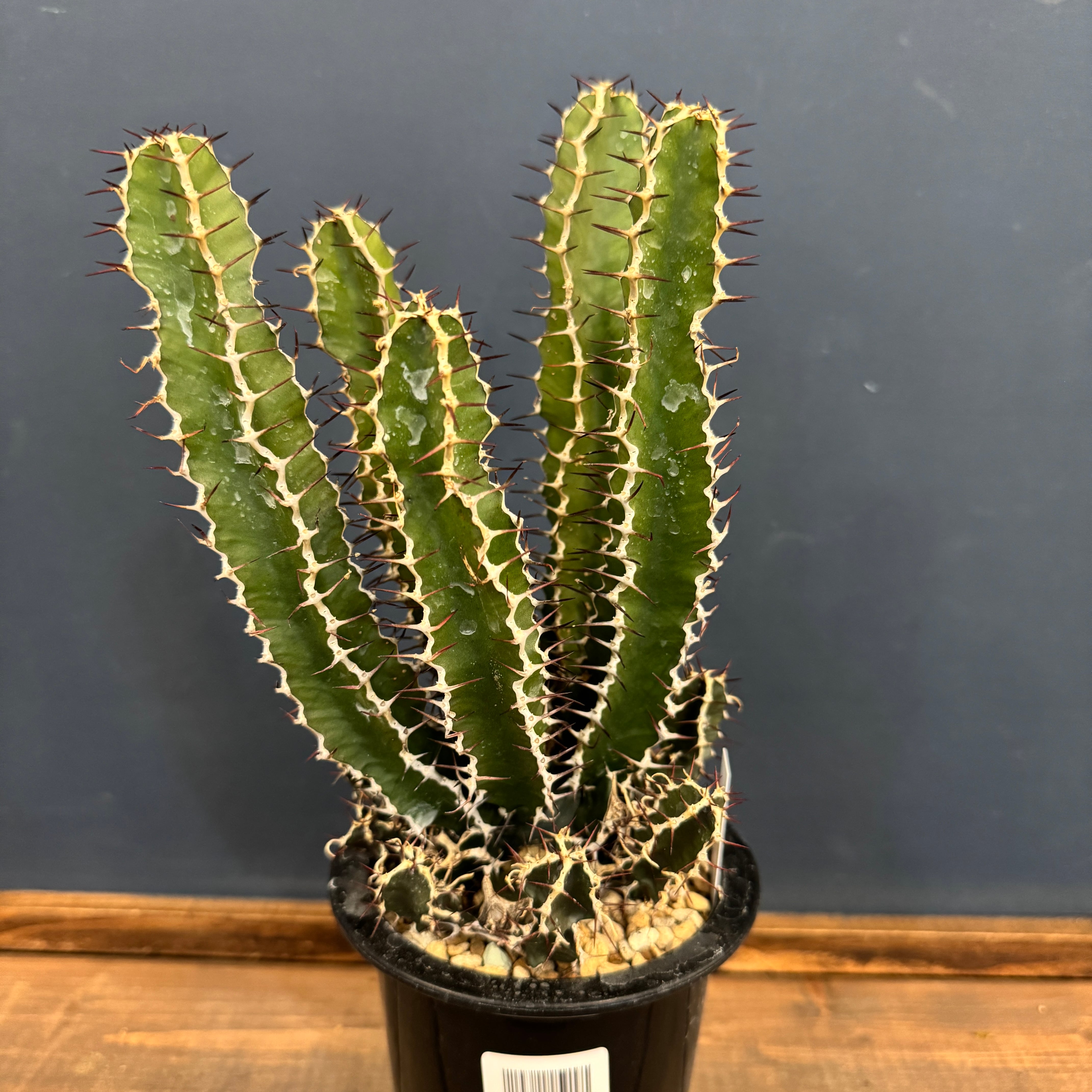とても珍しい品種で、大株になると太く木質化した幹から、柱サボテンのような多肉質でトゲのある葉を変改していきます。