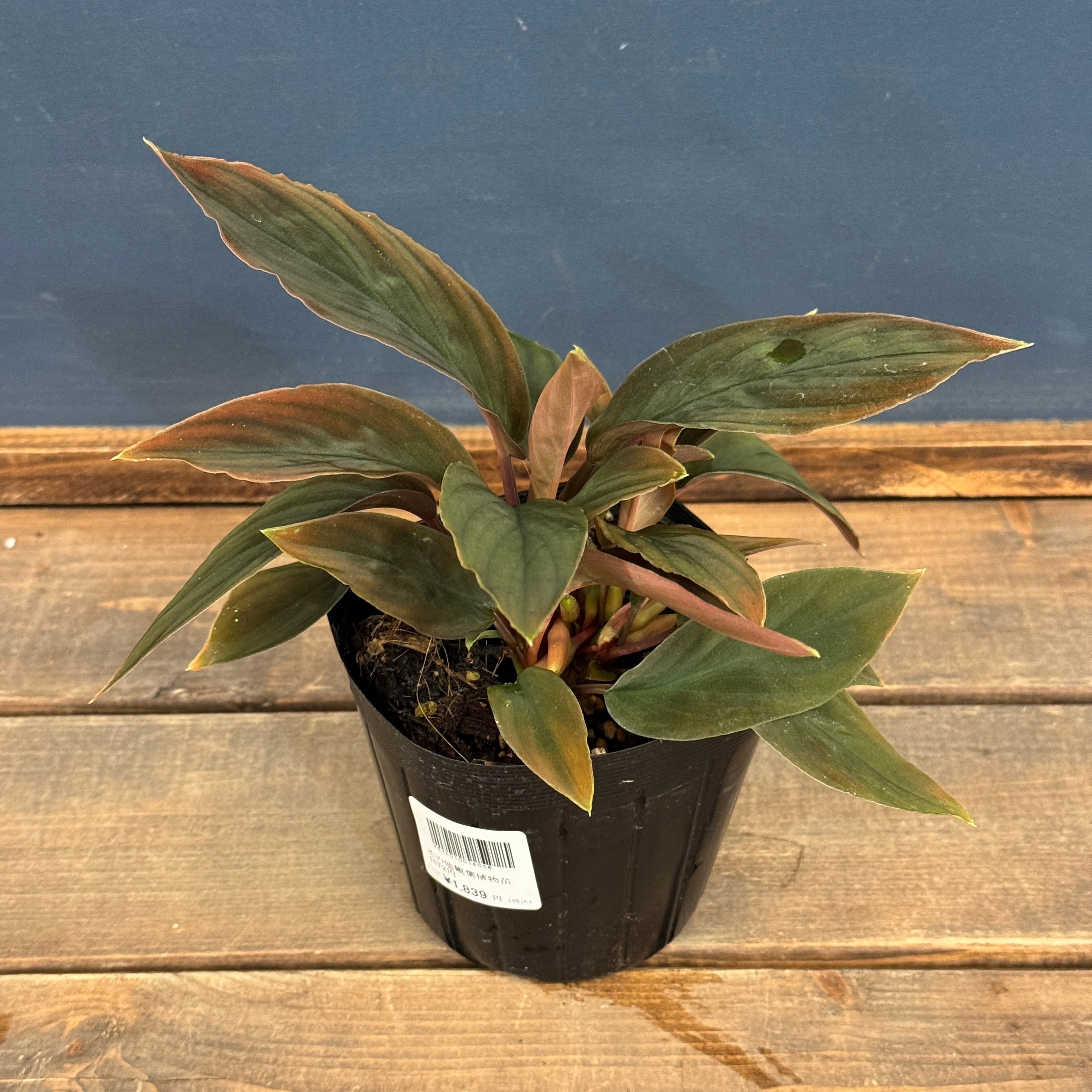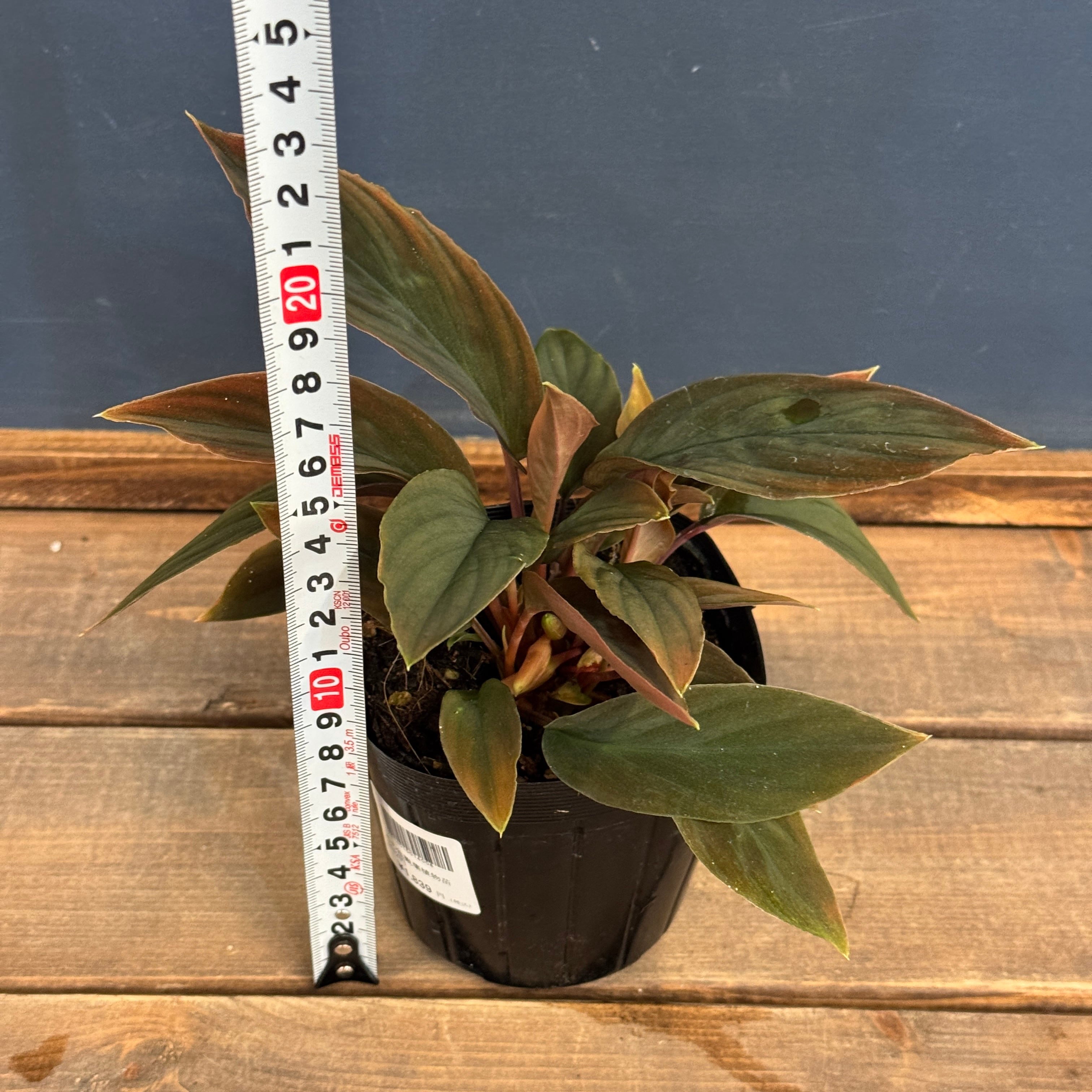 赤みを帯びた葉柄とベルベット質の葉を持つホマロメナの流通名個体です