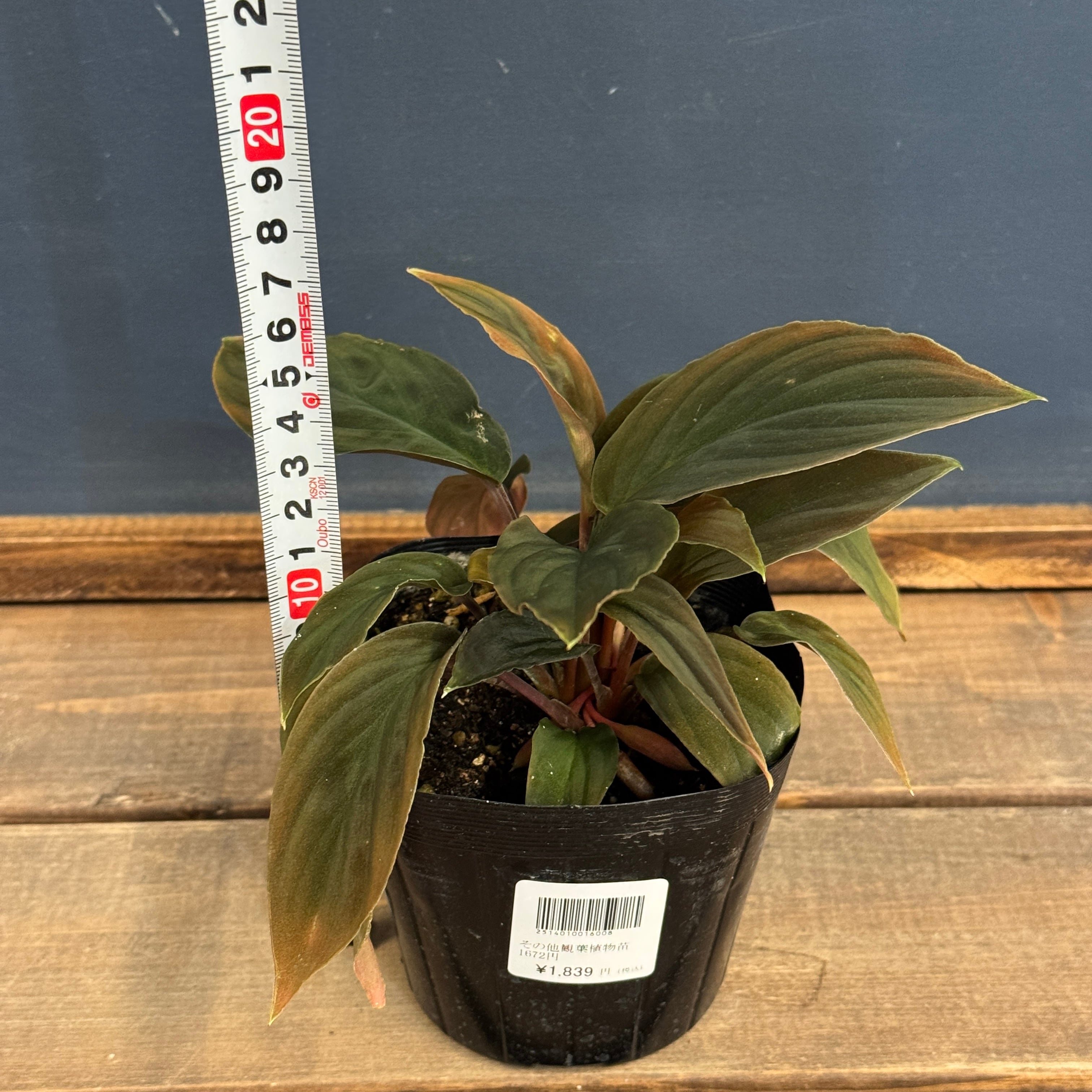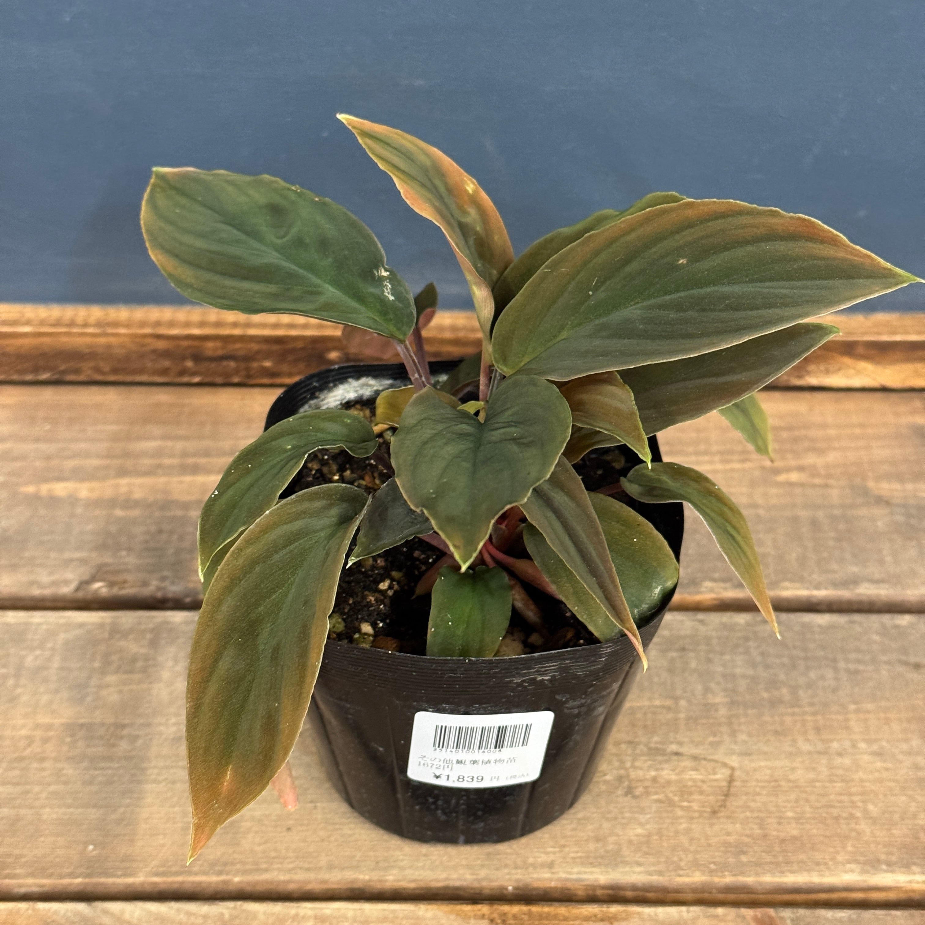 赤みを帯びた葉柄とベルベット質の葉を持つホマロメナの流通名個体です