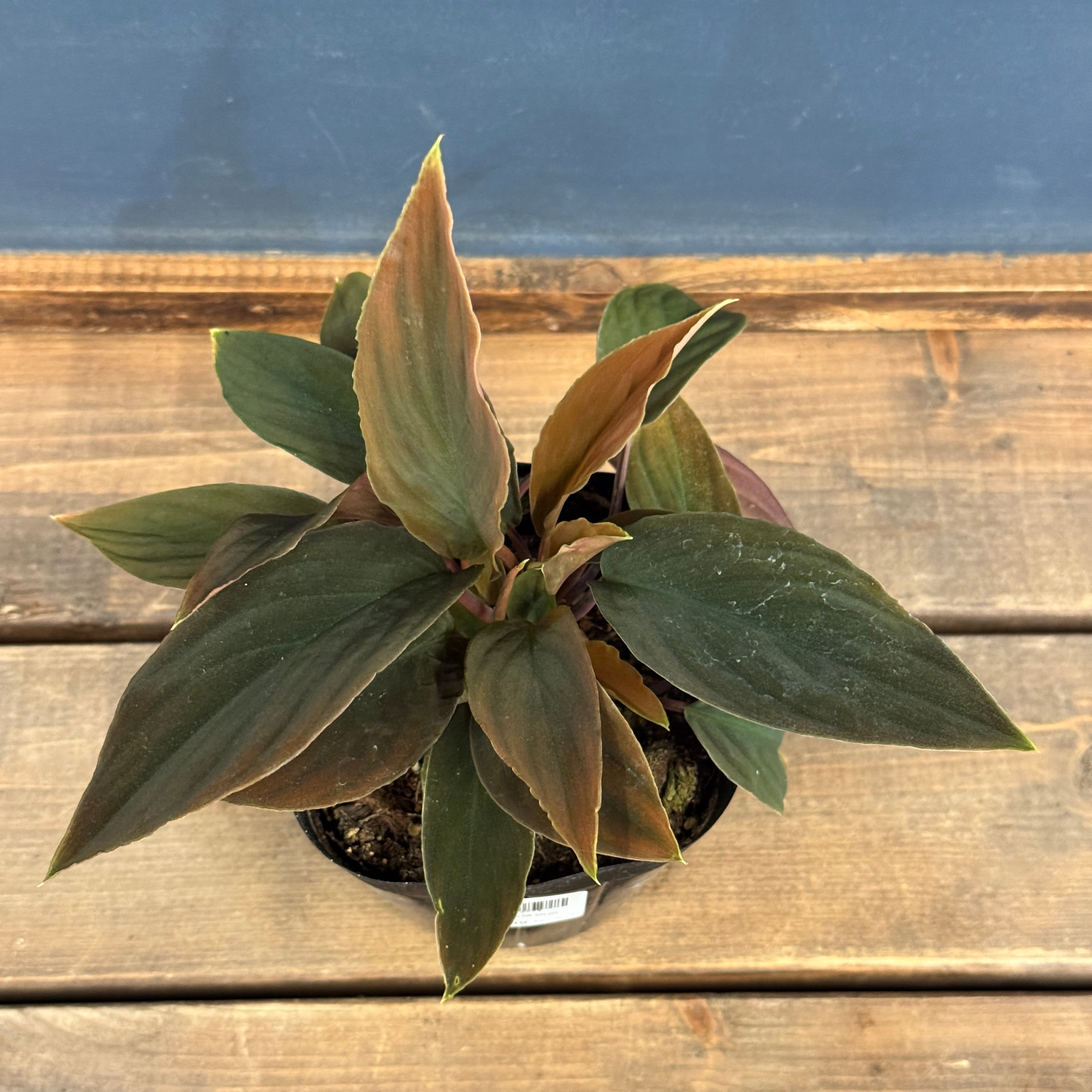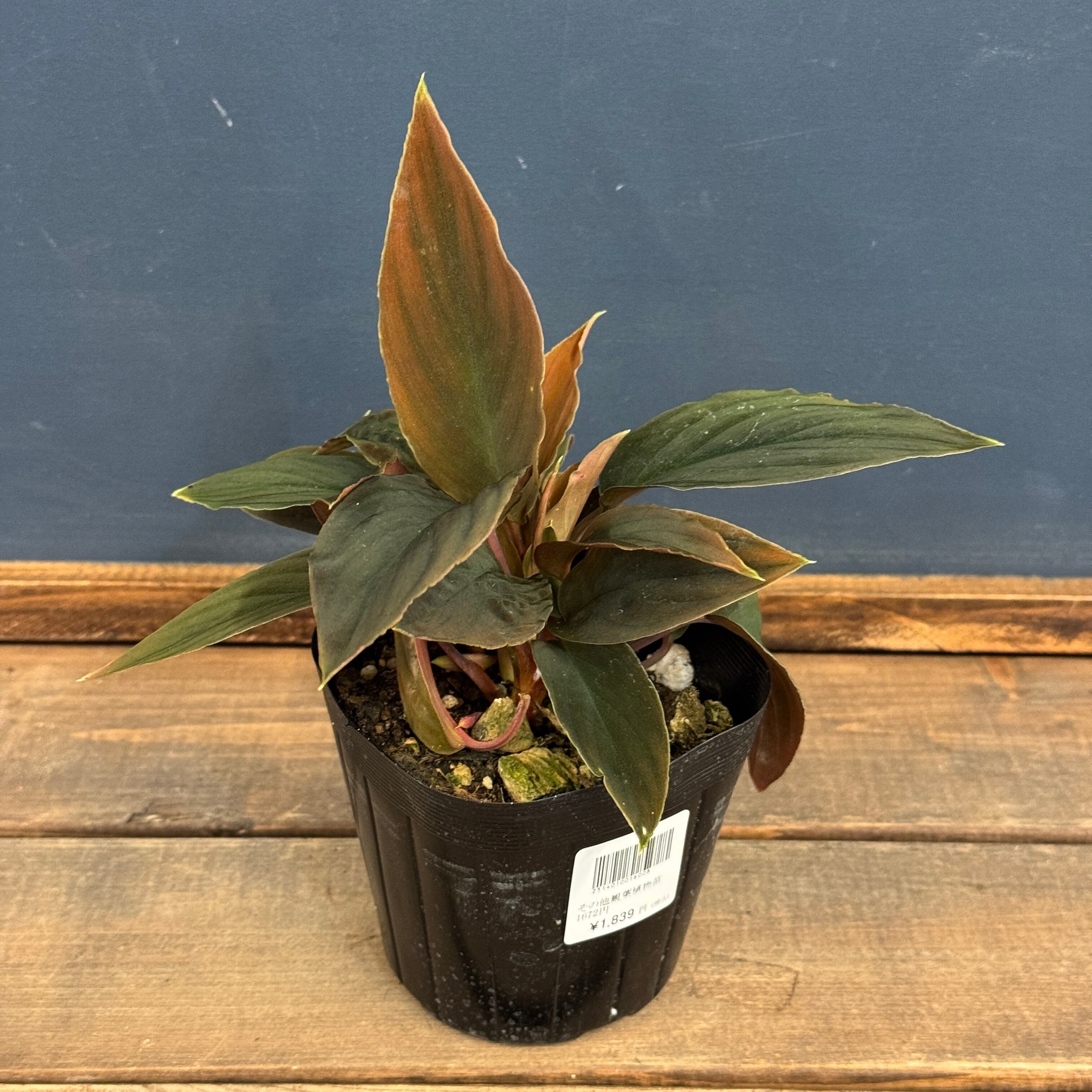 赤みを帯びた葉柄とベルベット質の葉を持つホマロメナの流通名個体です