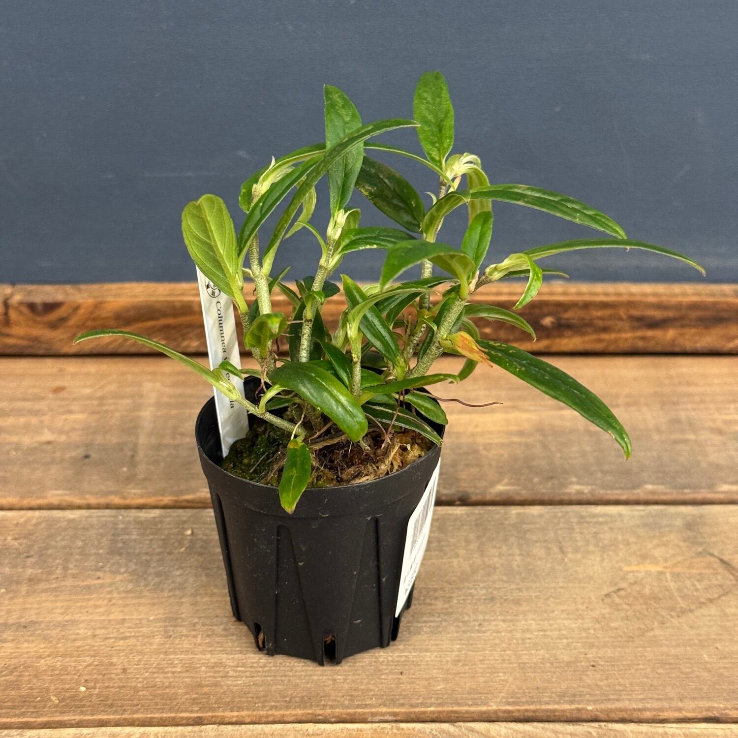 細長い枝と対生する葉を持つコルムネア属の着生植物です