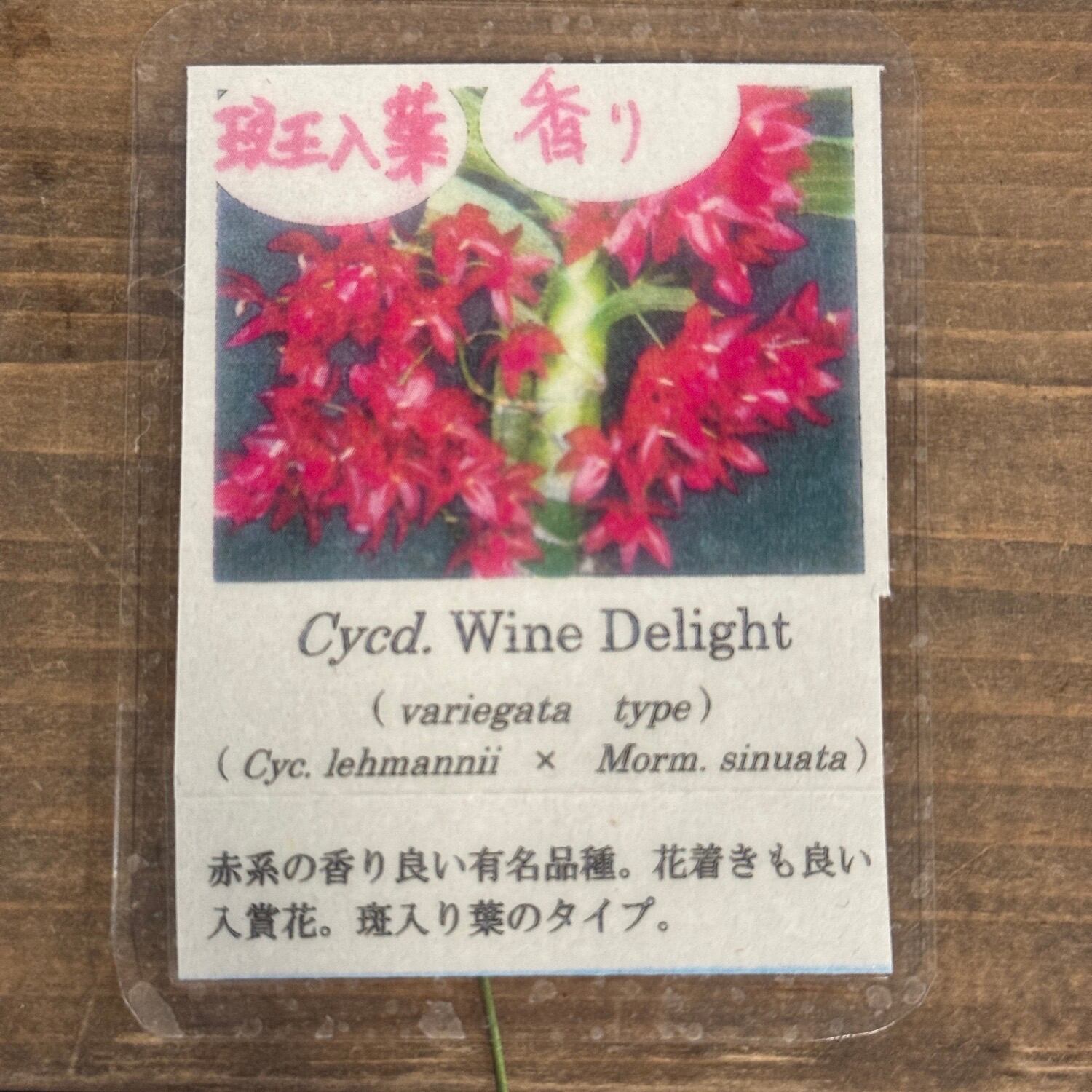 ○商品名:Cycd. Wine Delight ' JEM ' FCC / AOS ( variegata ) ( Cycnoches lehmannii × Mormodes sinuata )【736】