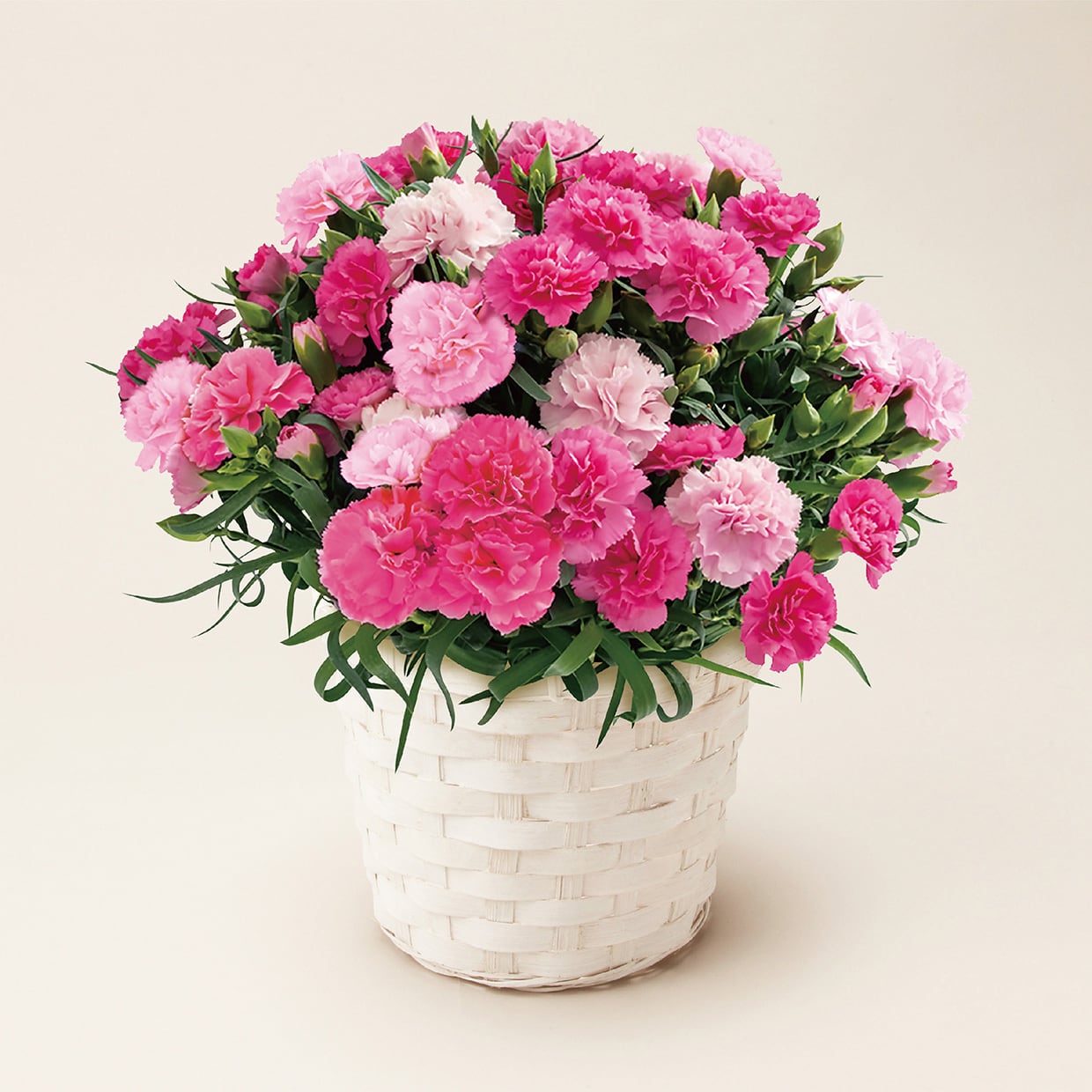 発色の良い花色が特徴のカーネーション。まとまりのある株姿でギフトに適しています。