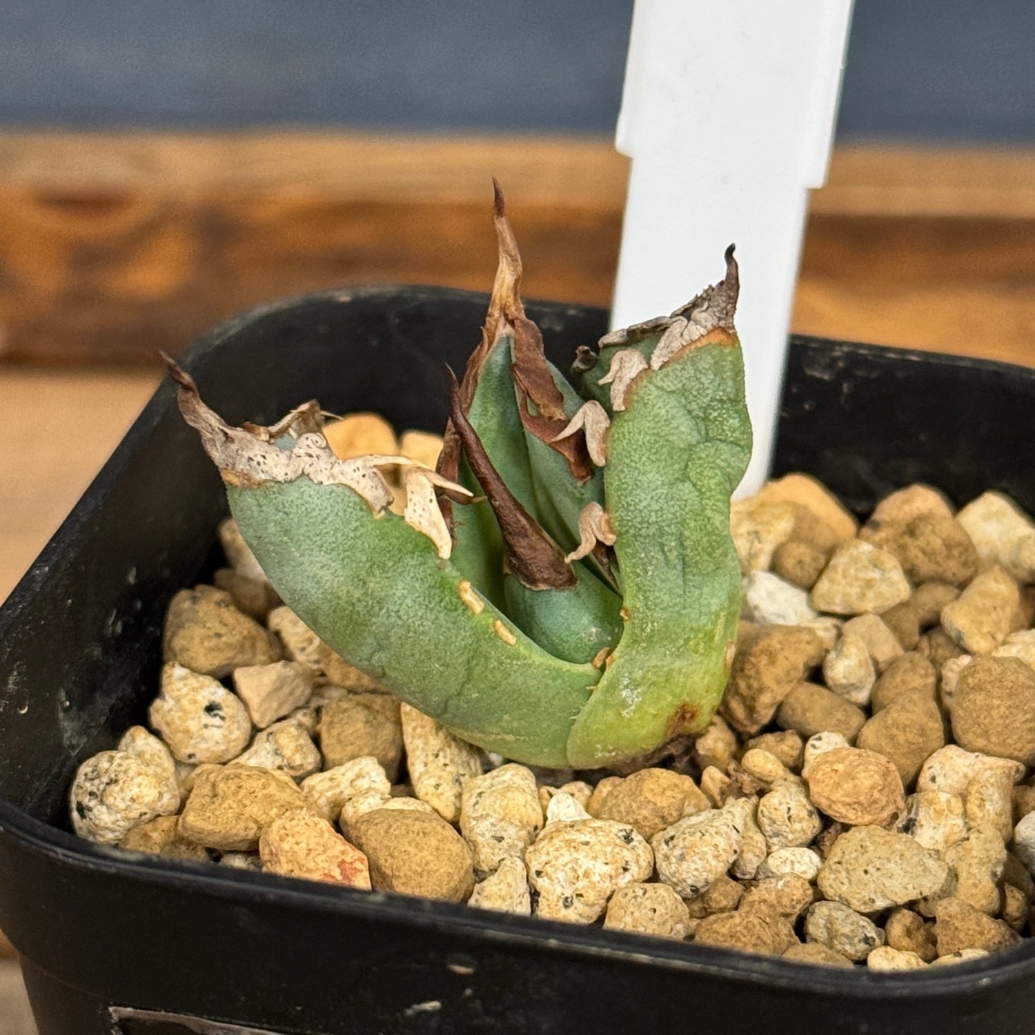 熊の手のように厳ついサイドの鋸歯と、幅広の葉が特徴のアガベ。比較的ボール型に育成しやすい株になります。