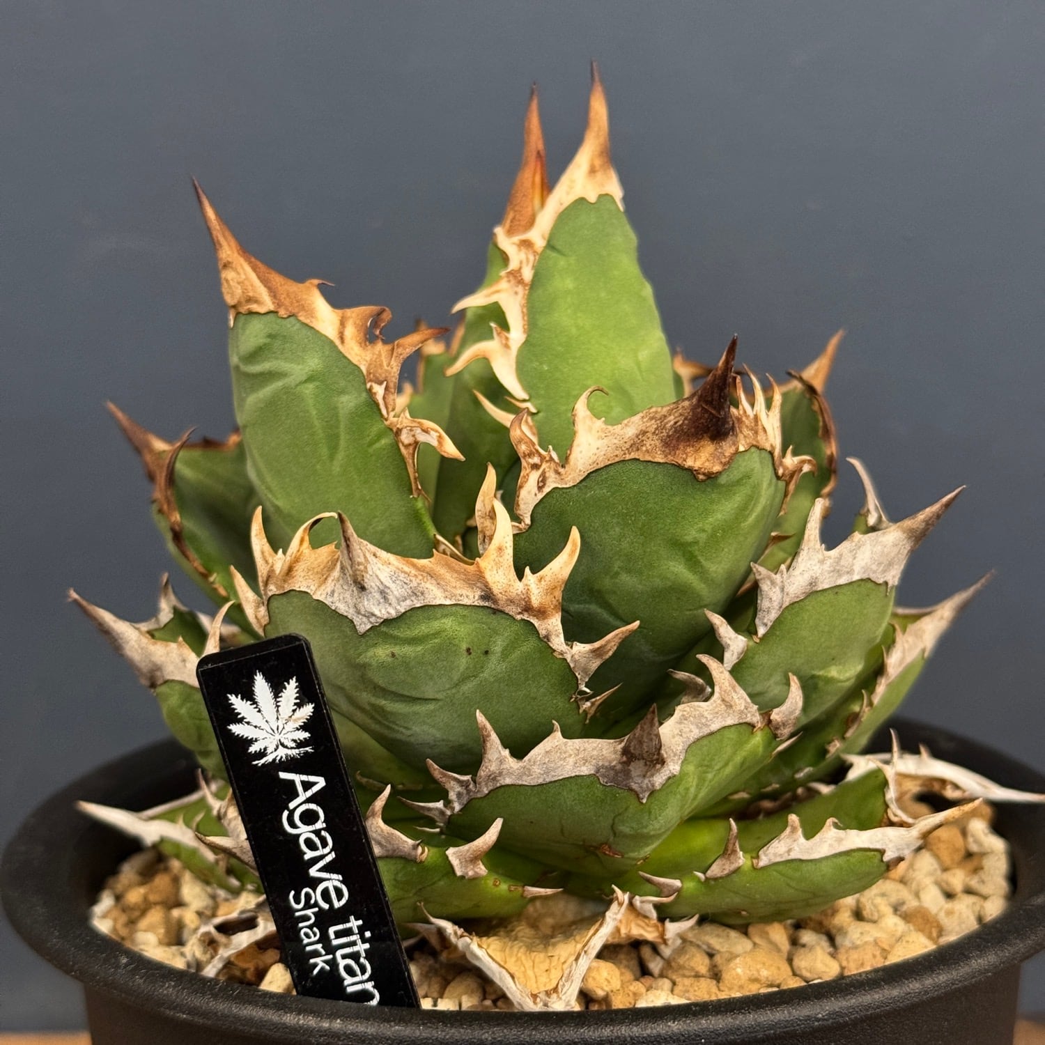 短めの広葉で、鋸歯のトップバンドに厚みがあるのが特徴のアガベ。葉がきれいに積み重ねっていく為、葉数が増えるほど見ごたえのある株になっていきます。
